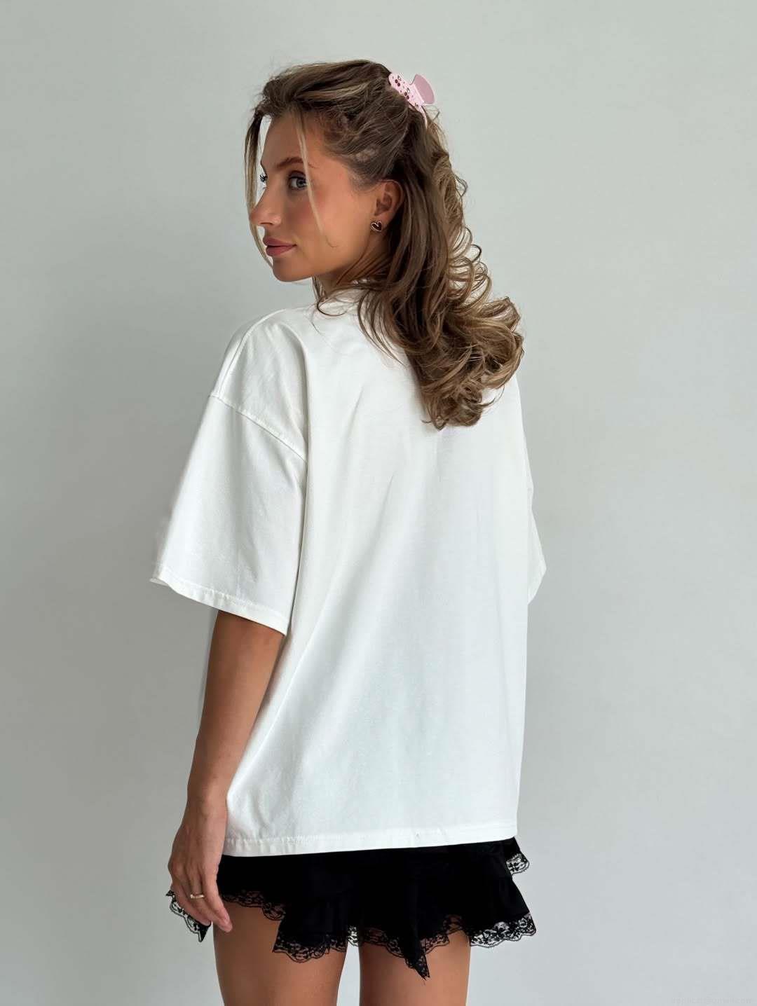 Letter Print, Crew Neck, Oversize, Dropped Shoulder Sleeves, Pink Letter Print, Iconic Letters