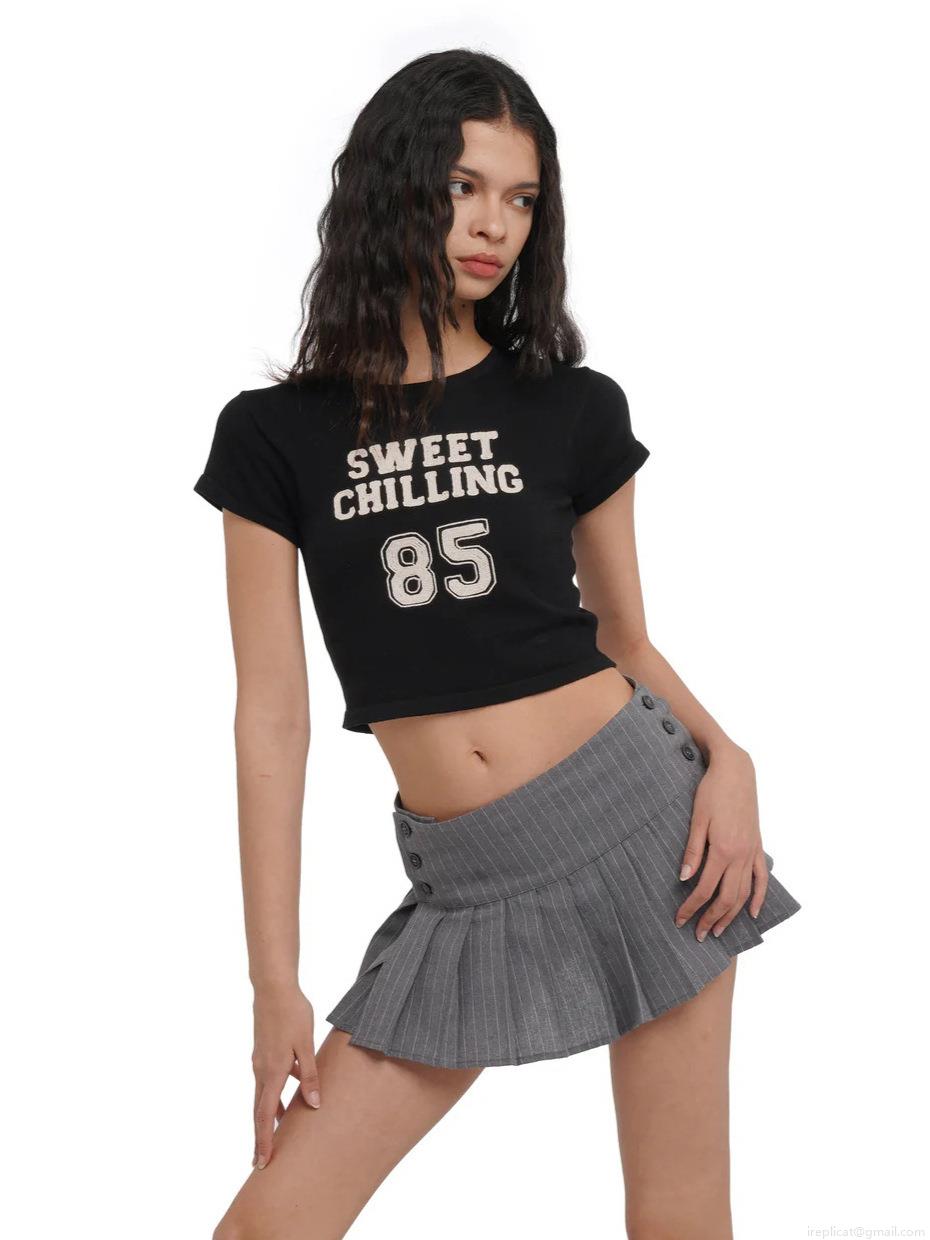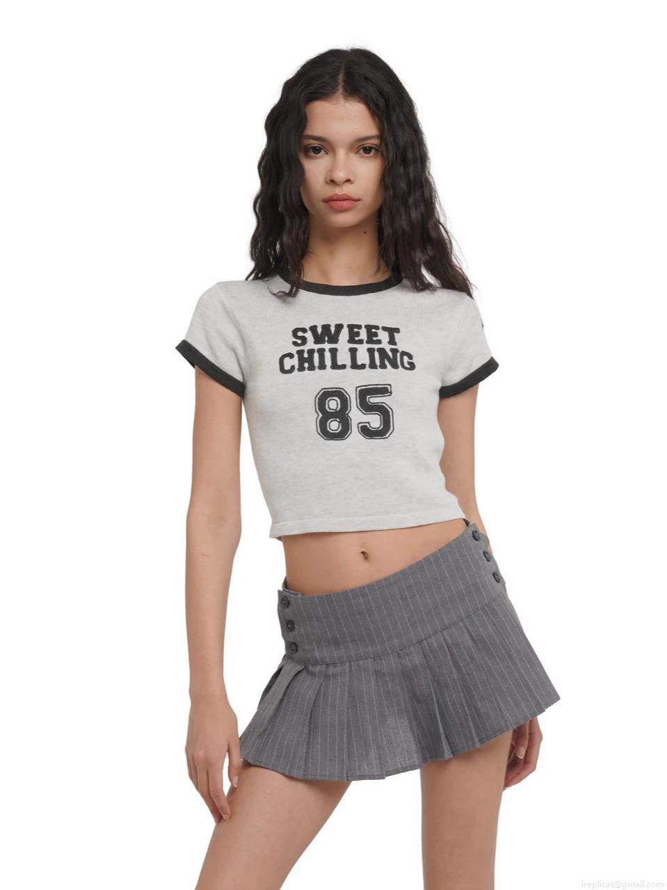 Letters, Color Blocking, Retro, Navel Exposed, Digital Printing