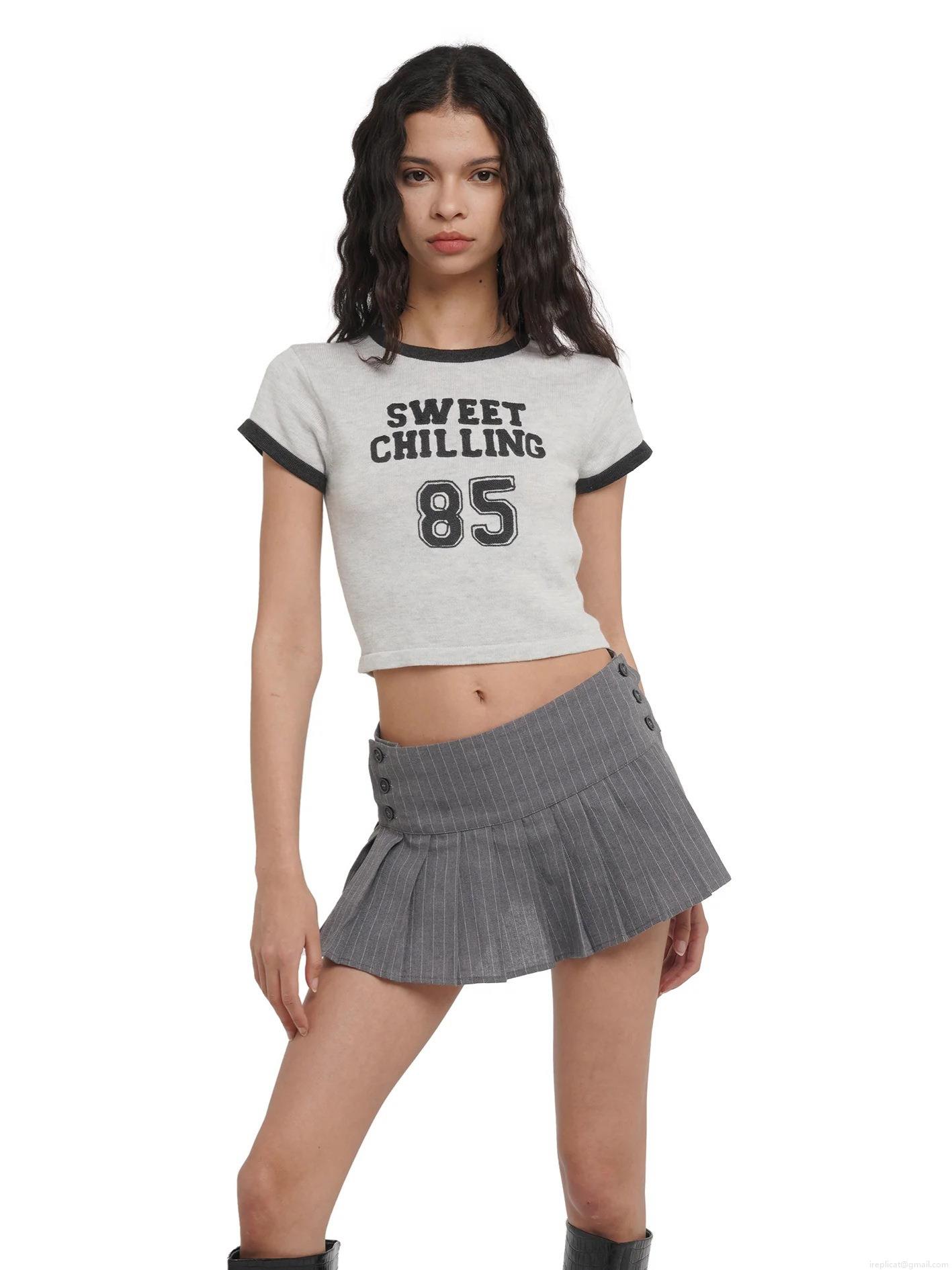 Women's Retro Street Style Cropped T-Shirt Contrast Color Number Print Short Sleeve Round Neck Cotton Blend Summer Casual Slim Fit Top