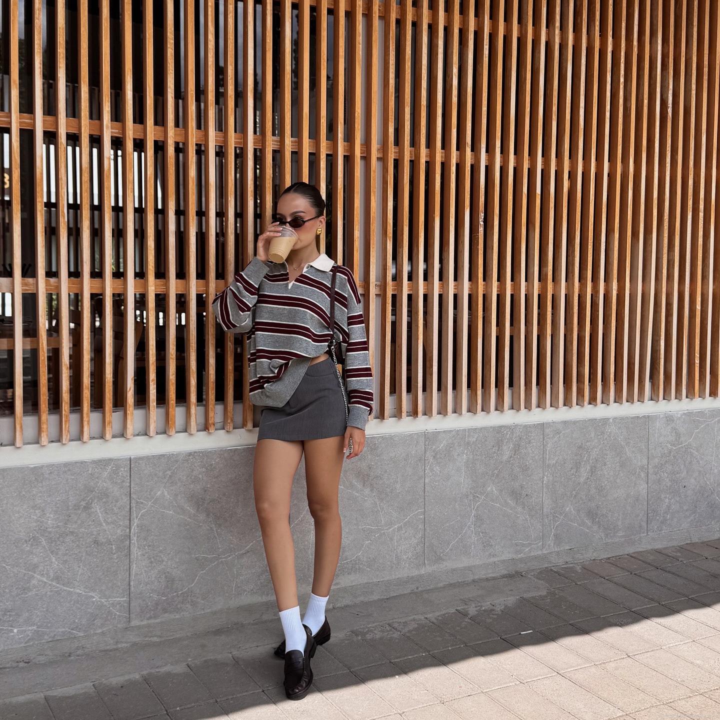 • Women's Retro Striped Knit Polo Shirt Contrast Color Long Sleeve Lapel Loose T-Shirt Casual Streetwear Pullover Tops Polyester Knitwear For Women