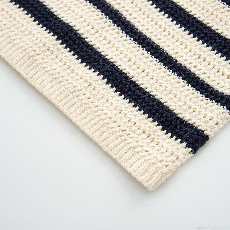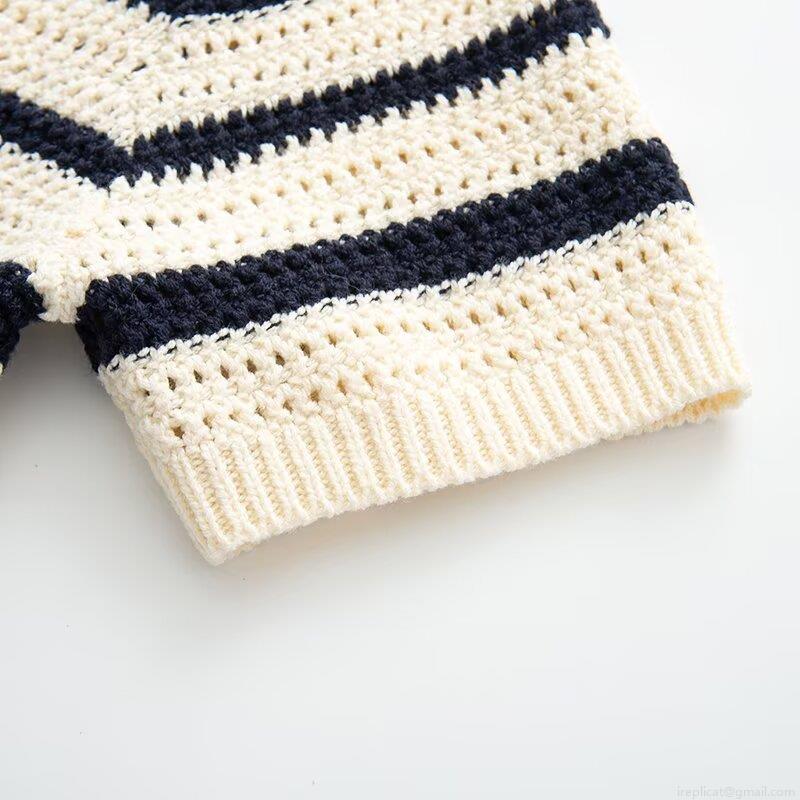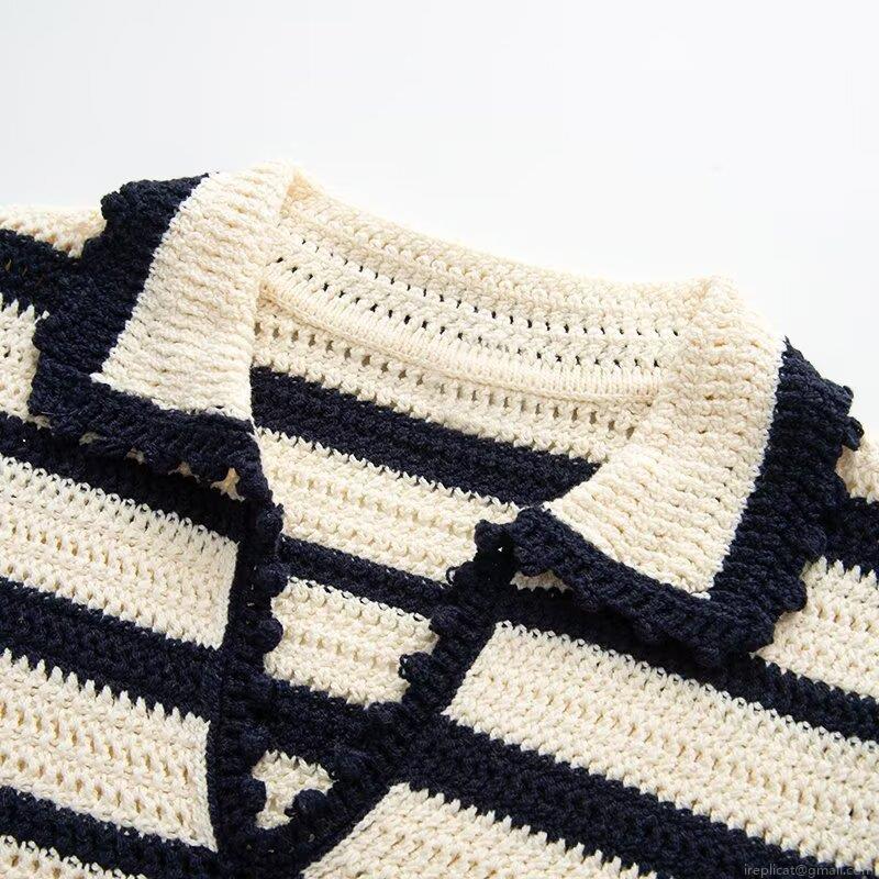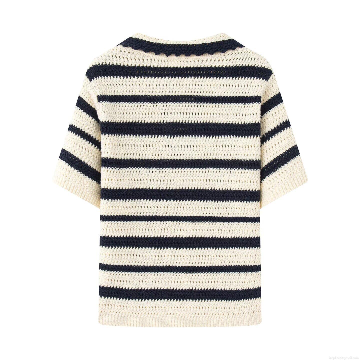 Horizontal Stripes, Classic Stripes, Polo Collar, Crochet Openwork
