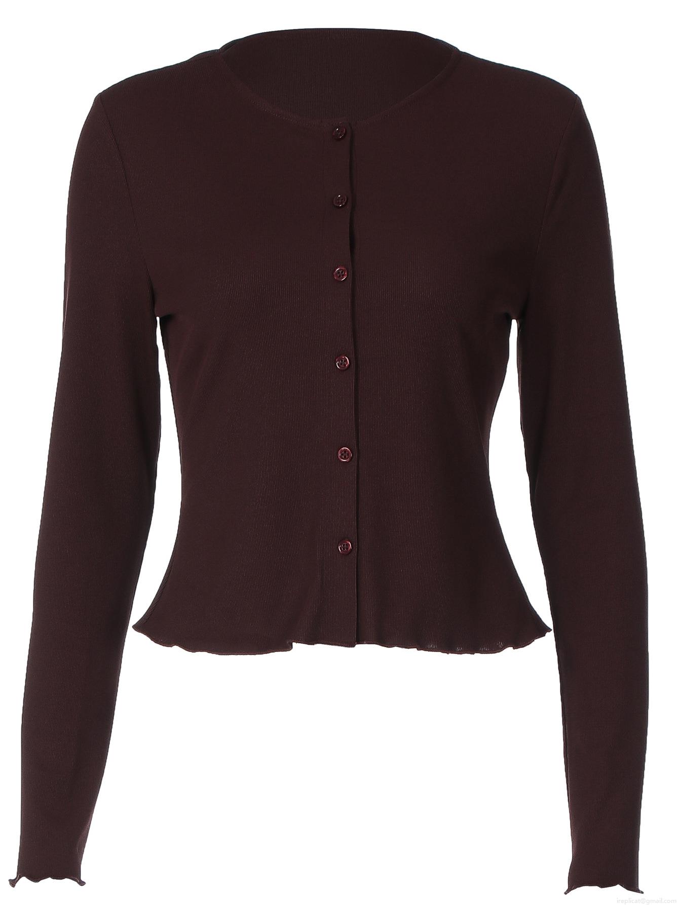 • Women's Ribbed Knit Long Sleeve Cardigan Button Down Slim Fit Top Lettuce Trim Solid Color Sexy Streetwear Tee Shirt For Daily Dating Fall 2025