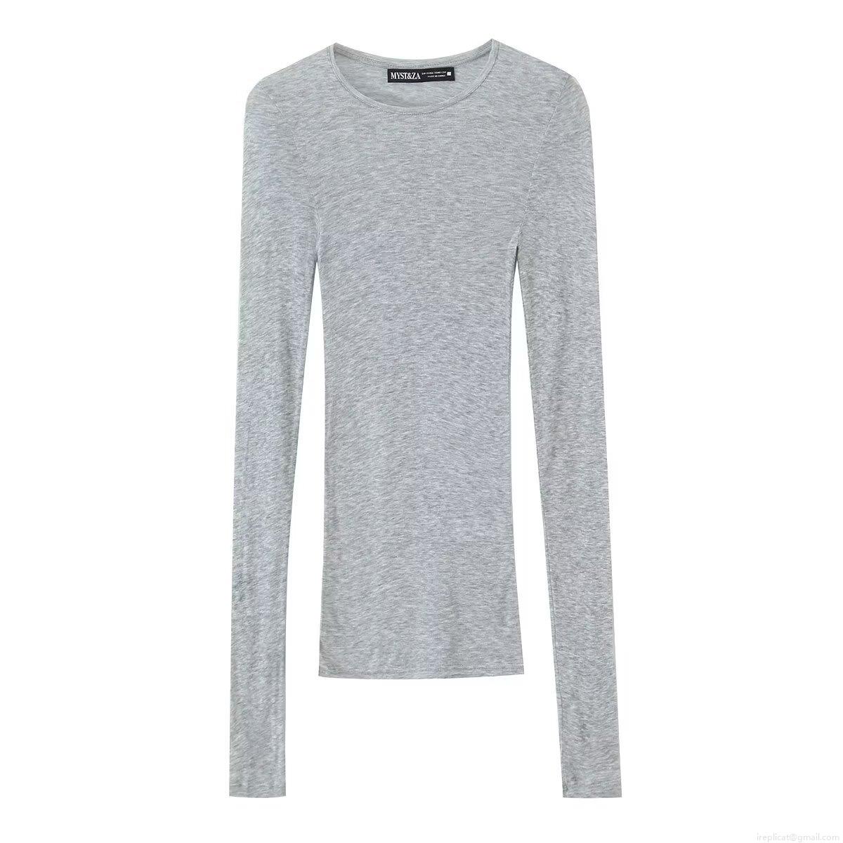 Solid Color, Long Sleeves, Crew Neck, Slimming, Ribbed Strip