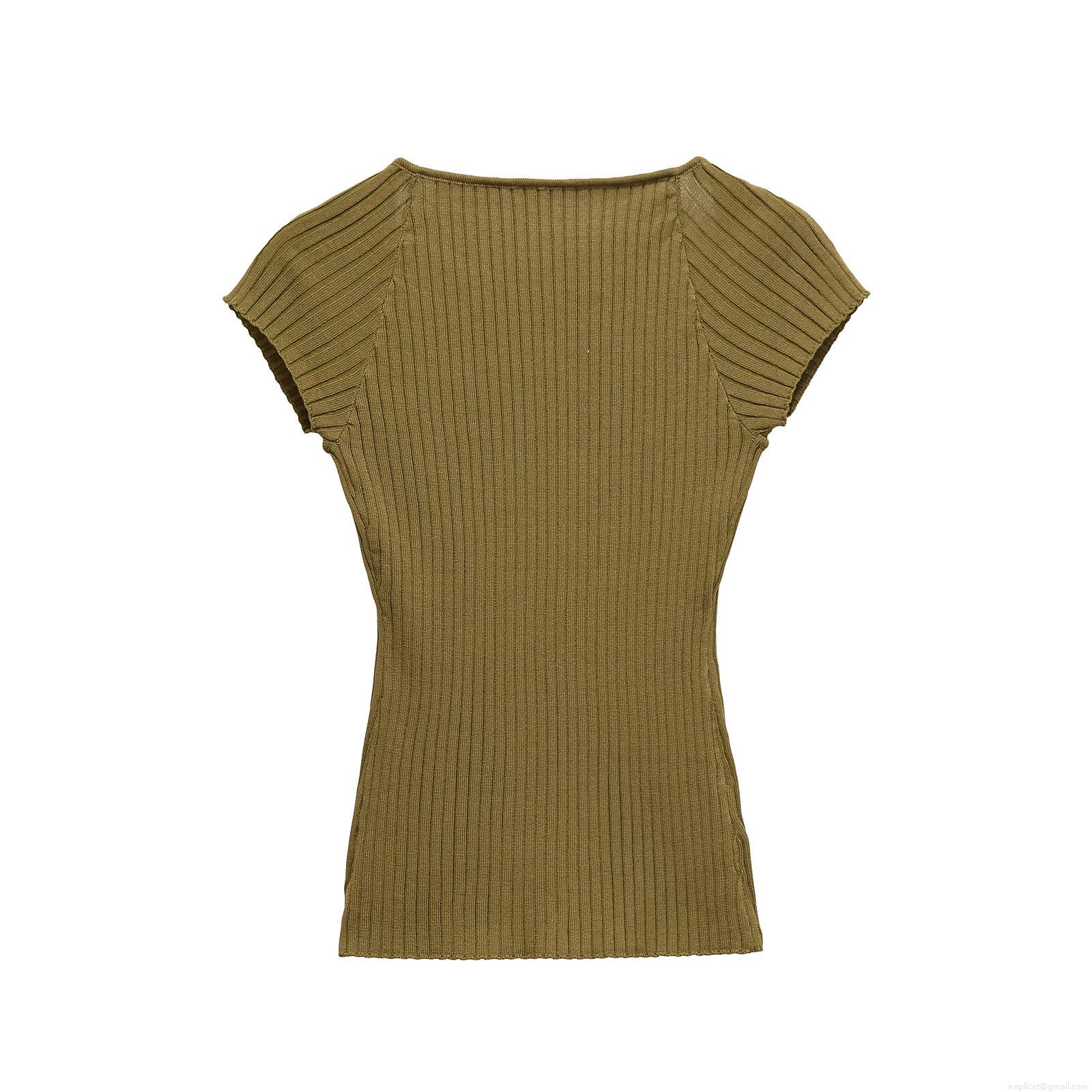 • Women's Ribbed Knit Slim Fit T-Shirt Polyester Spandex Round Neck Short Sleeve Solid Color Basic Summer Top For Daily Wear Casual