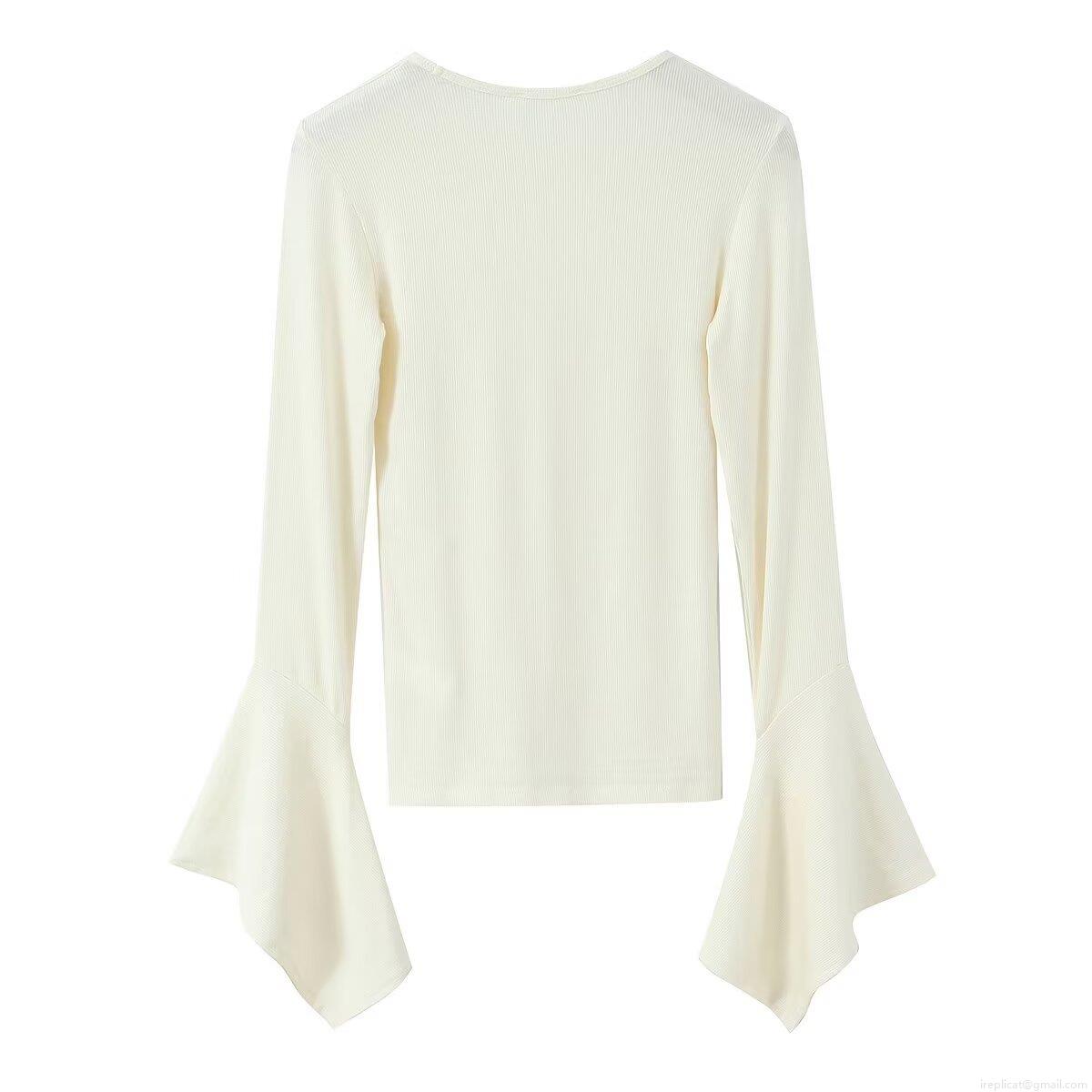 • Women's Ribbed Knit T-Shirt Long Flare Bell Sleeve Round Neck Slim Fit Solid Color Casual Basic Tee Top Polyester Spandex Blend Ribbed Autumn Winter Knitwear