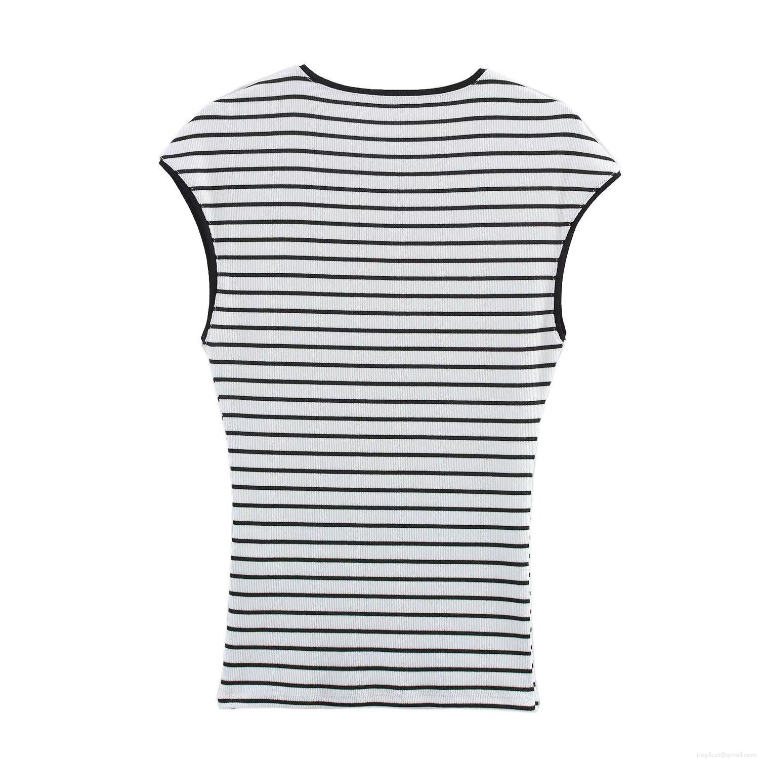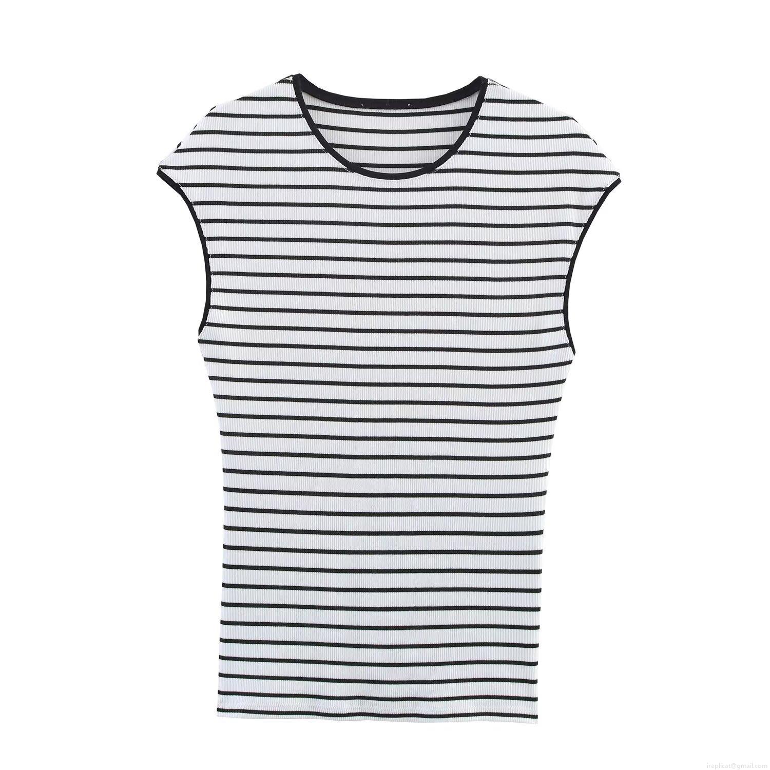 Women's Ribbed Knit T-Shirt Sleeveless Round Neck Striped Contrast Color Casual Slim Fit Streetwear Summer Top