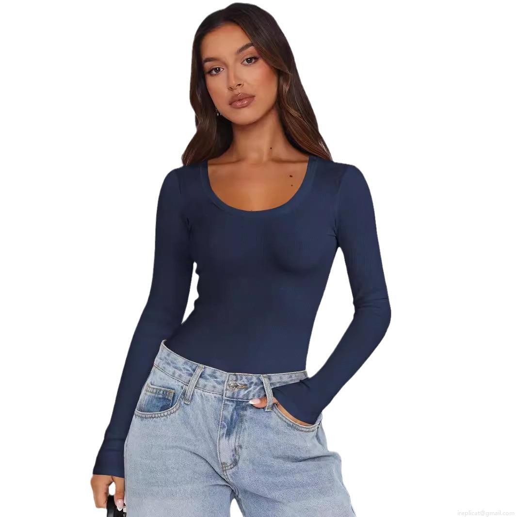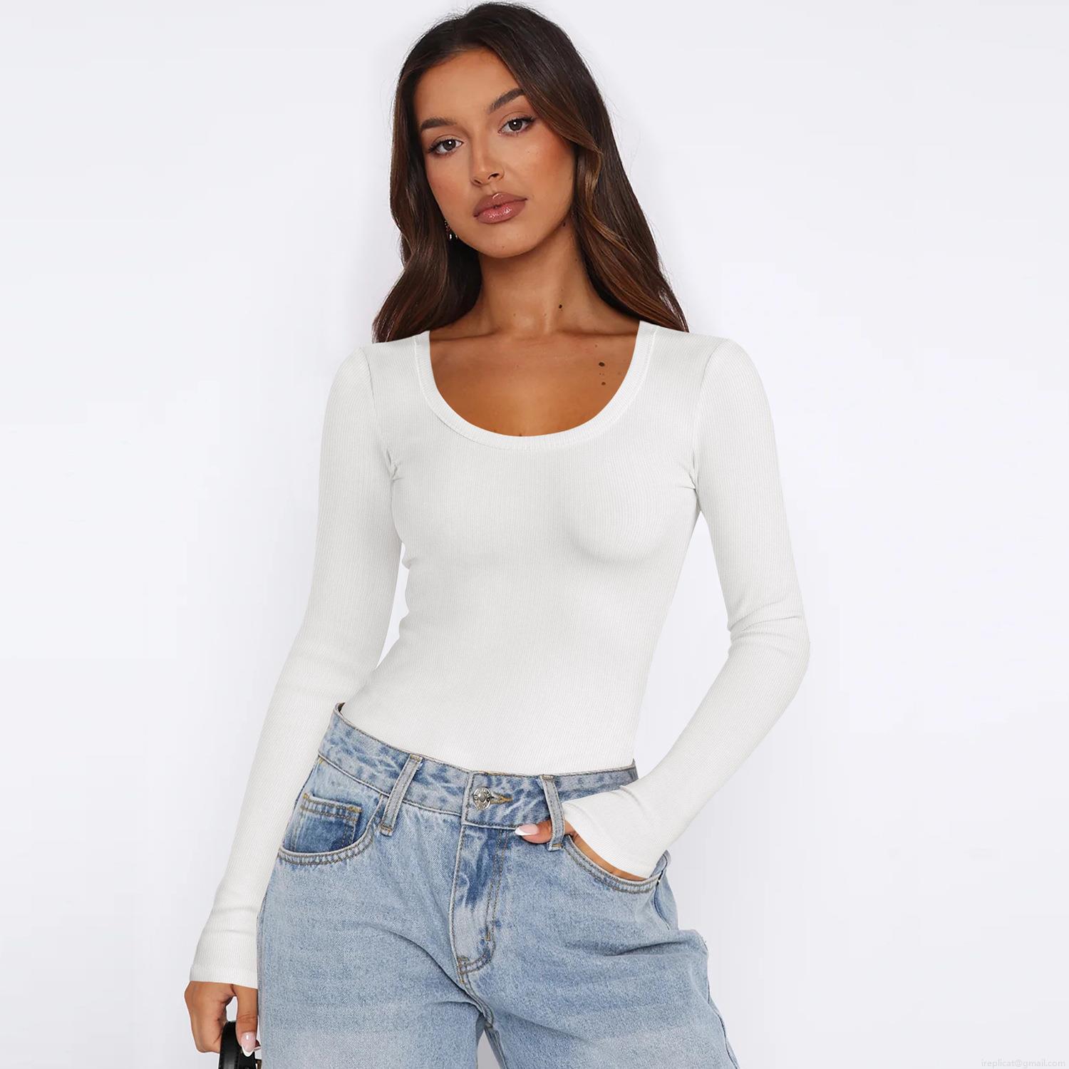 • Women's Ribbed Knit T-Shirt Slim Fit Long Sleeve U Neck Solid Color Basic Layering Top Soft Stretchy Casual Tee For Women Daily Wear Y2K Style
