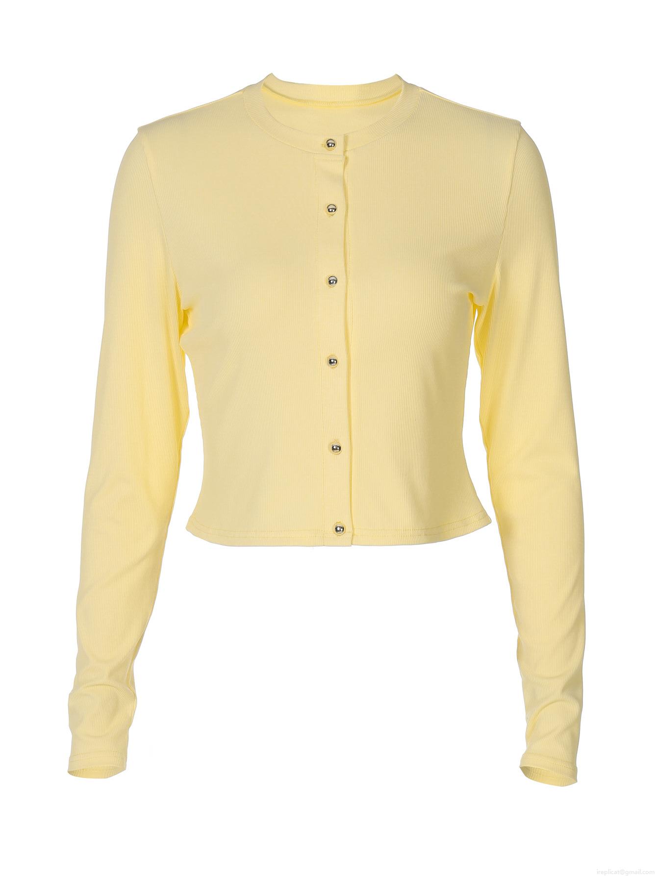 • Women's Ribbed Knitted Cardigan Slim Fit Long Sleeve Button Down Short T-Shirt Solid Color Chic Streetwear Top For Daily Wear