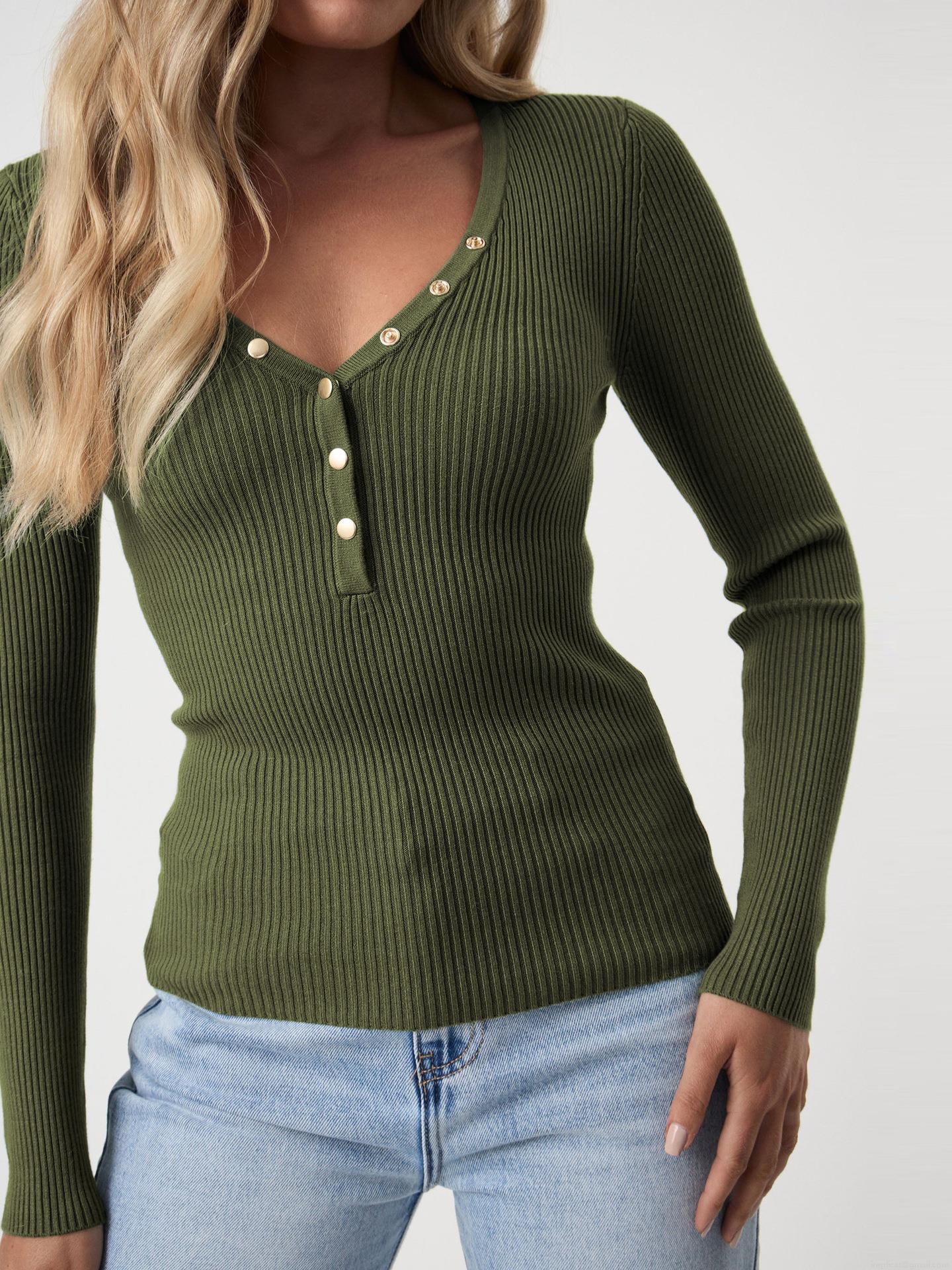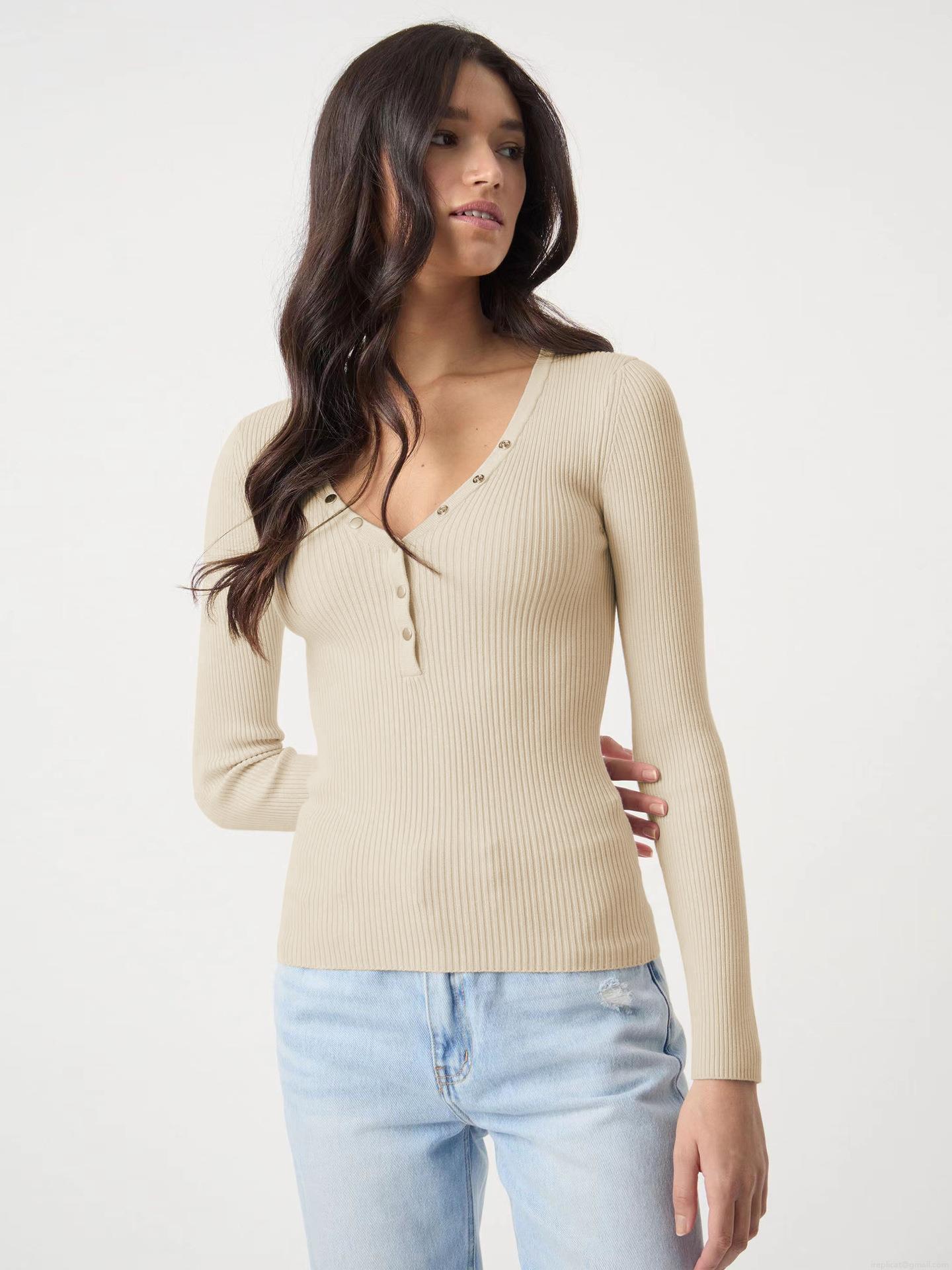 • Women's Ribbed V Neck Button Slim Fit T-Shirt Long Sleeve Knit Pullover Top Sexy Elegant Office Daily Casual Ribbed Blouse