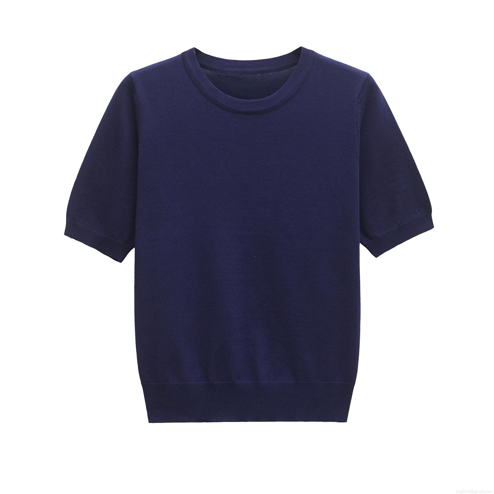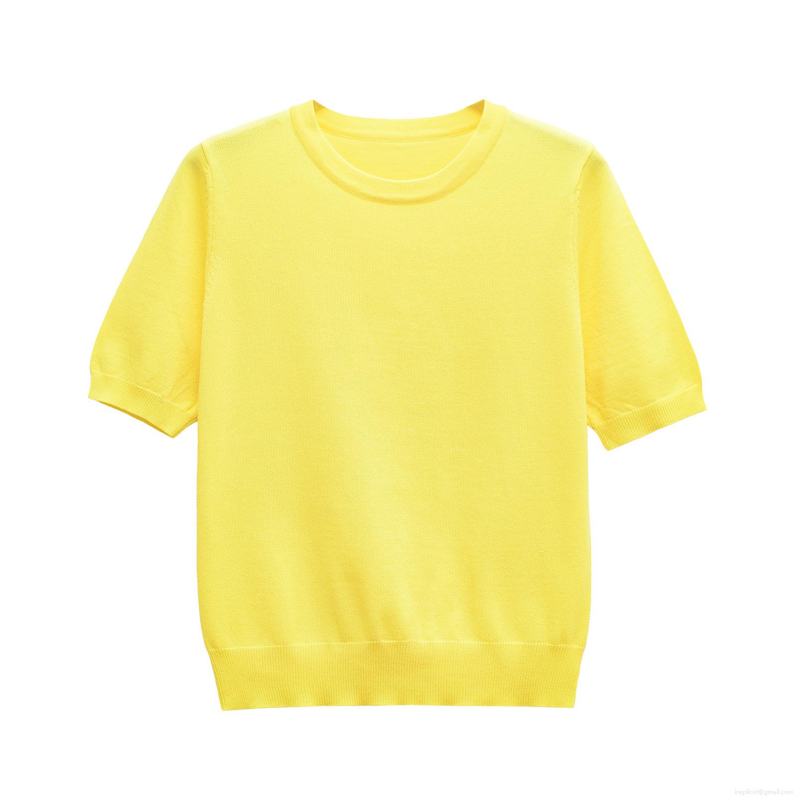 • Women's Round Neck Short Sleeve Knit T-Shirt Polyester Soft Ribbed Trim Solid Color Pullover Top for Daily Commute Casual Style