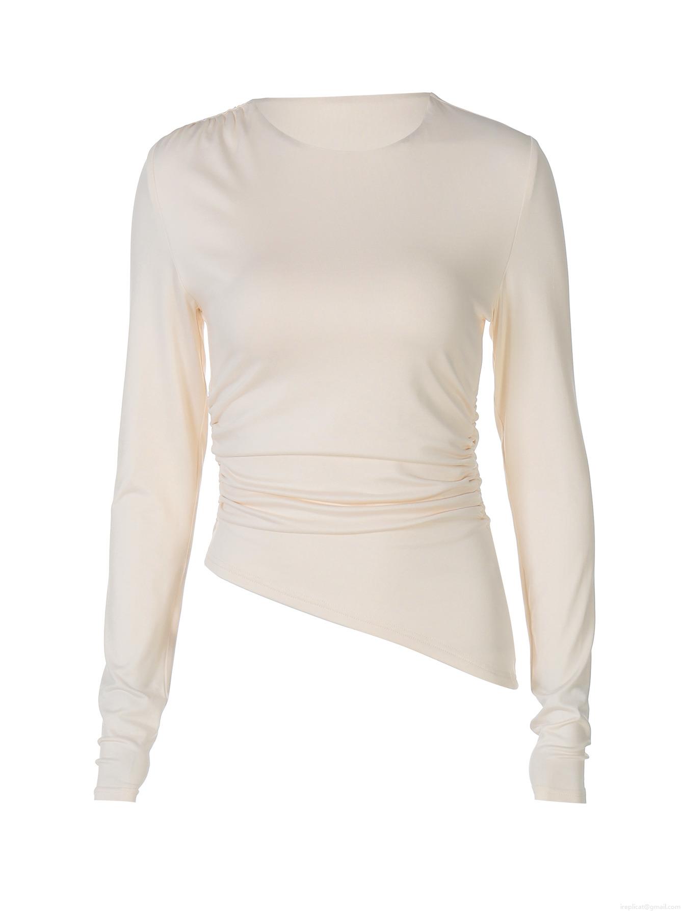 Women's Ruched Long Sleeve T-Shirt With Asymmetric Hem Slim Fit Round Neck 95% Polyester 5% Spandex Solid Color Sexy Streetwear Fashion Top For Women