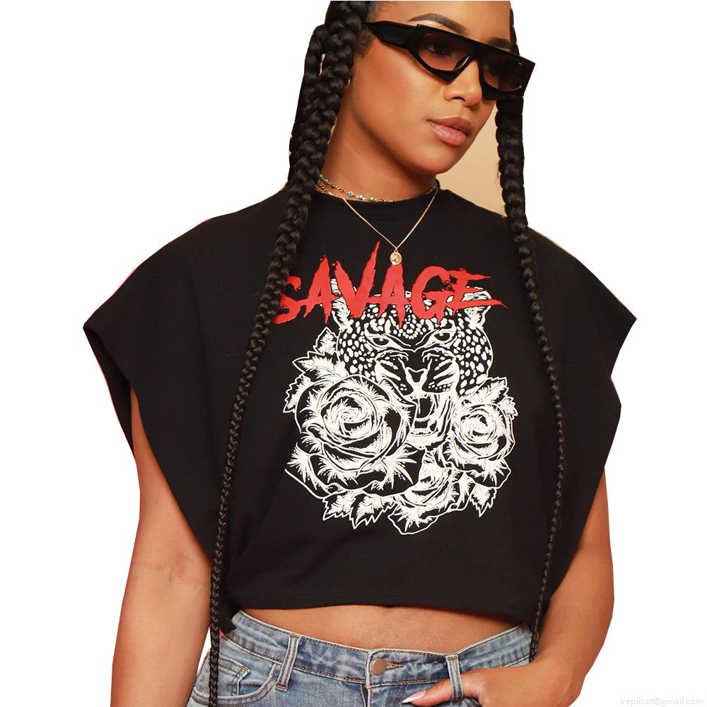 • Women's Savage Leopard Rose Print Sexy Crop Top Short Sleeve Round Neck Streetwear Slim Fit Cotton Blend T-Shirt Top