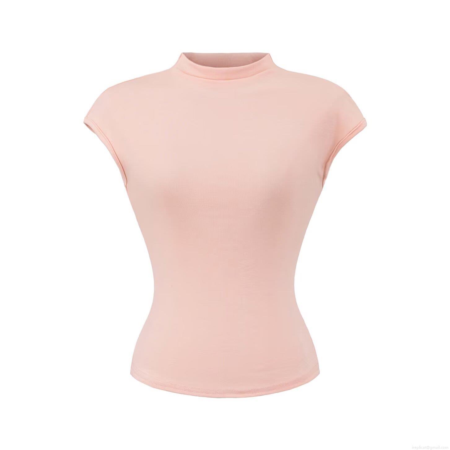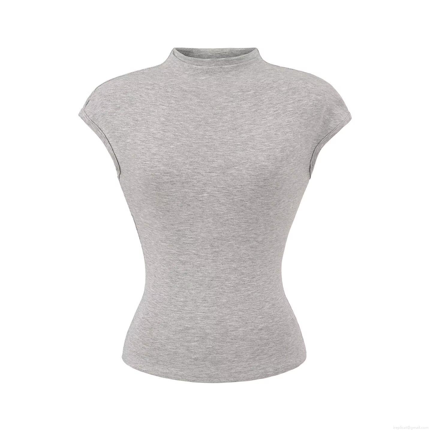 • Women's Semi-high Neck Flutter Sleeve T-Shirt Viscose Elastane Slim Fit Solid Color Summer Knit Top Streetwear Daily Commuting Tee