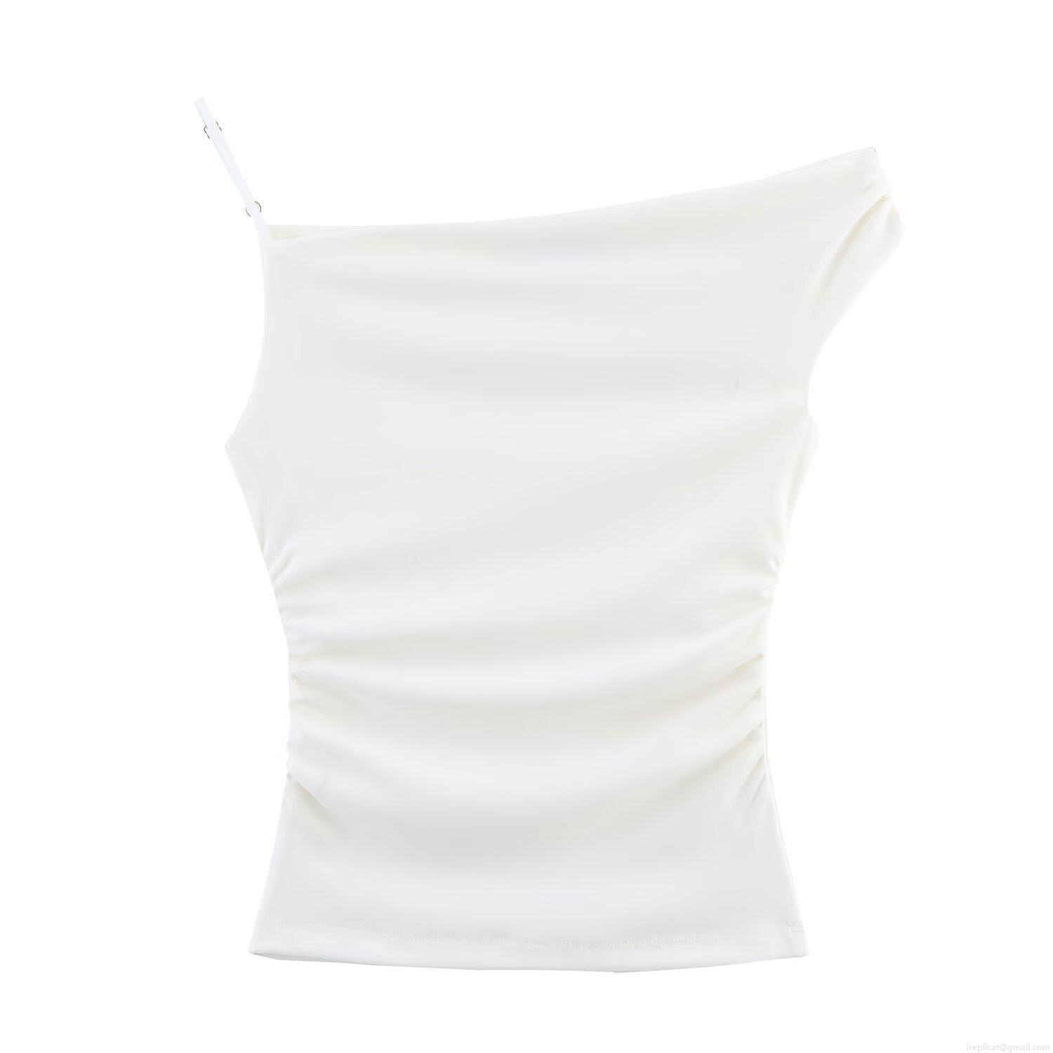 • Women's Sexy Asymmetric One Shoulder Ruched T-Shirt Slim Fit Polyester Solid Color Sleeveless Top Summer Casual Streetwear Party Tee For Ladies
