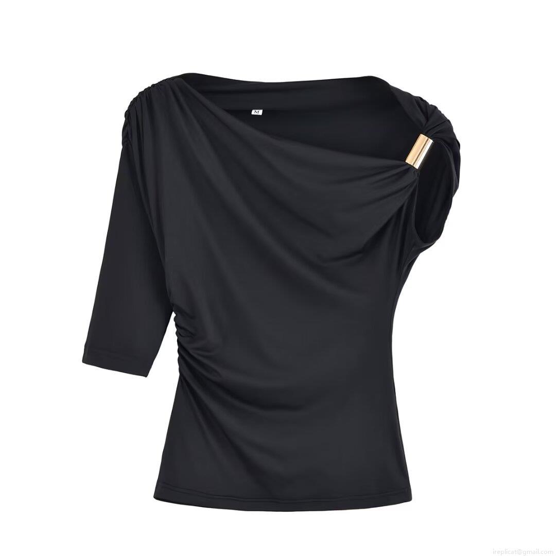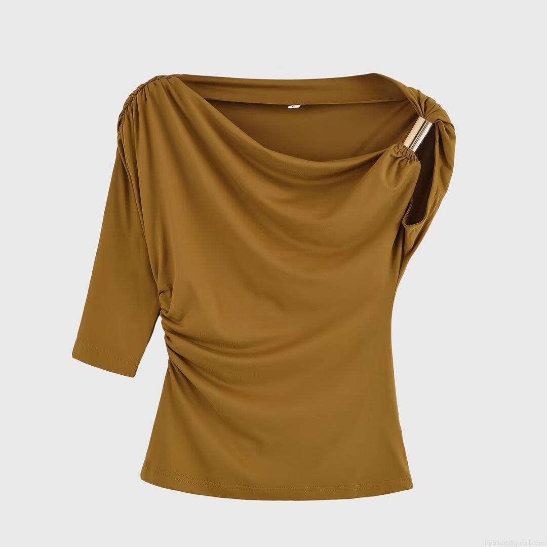 • Women's Sexy Asymmetric Ruched Top One Shoulder Long Sleeve Tee With Metal Ring Detail Solid Color Polyester Casual Slim Fit Shirt