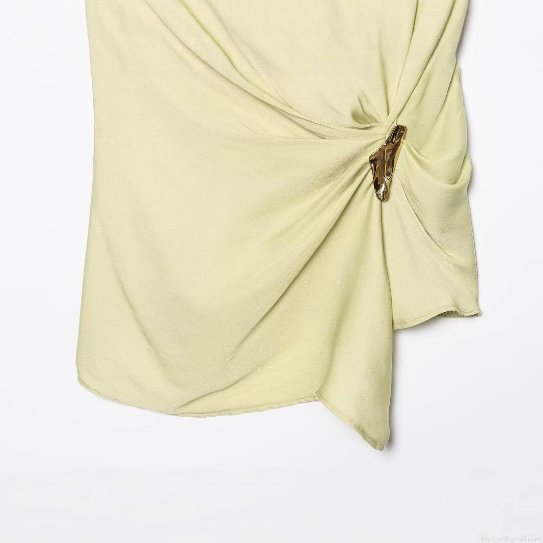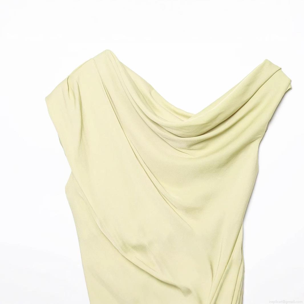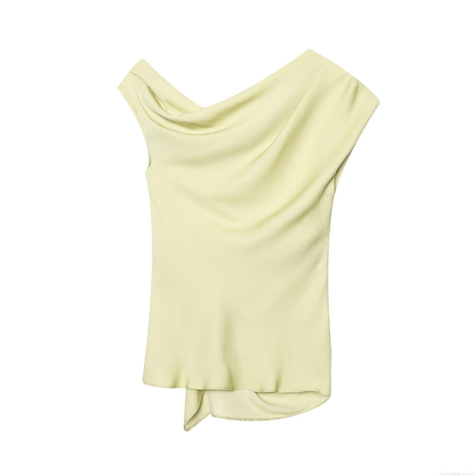 • Women's Sexy Asymmetric Slant Neck Sleeveless Top Elegant Pleated Satin Texture Blouse With Metal Buckle For Summer Party Dating Slim Fit Pullover Shirt