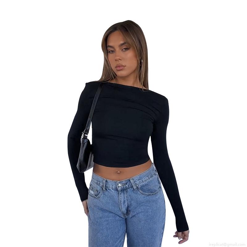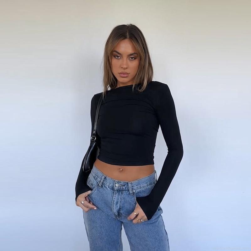 • Women's Sexy Backless Long Sleeve Crop Top Polyester Spandex Knitted Slim Fit Tie Back Solid Color T-Shirt For Party Club Casual Streetwear