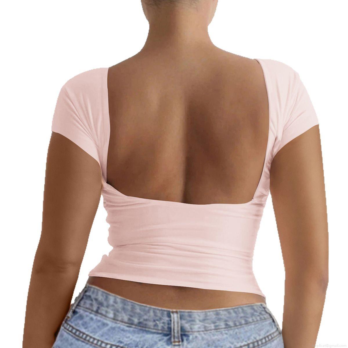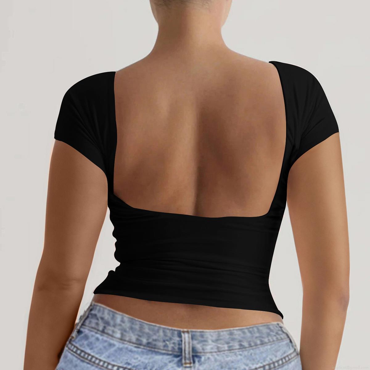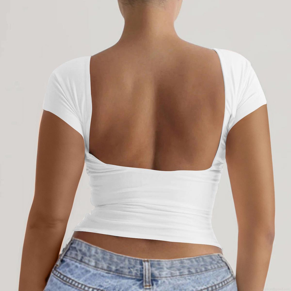 • Women's Sexy Backless T-Shirt Knitted Viscose Elastane Slim Fit Round Neck Short Sleeve Y2K Style Solid Color Summer Clubwear Top
