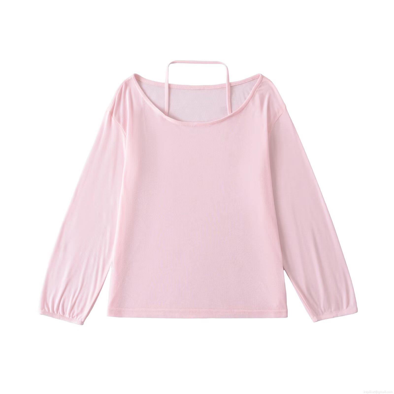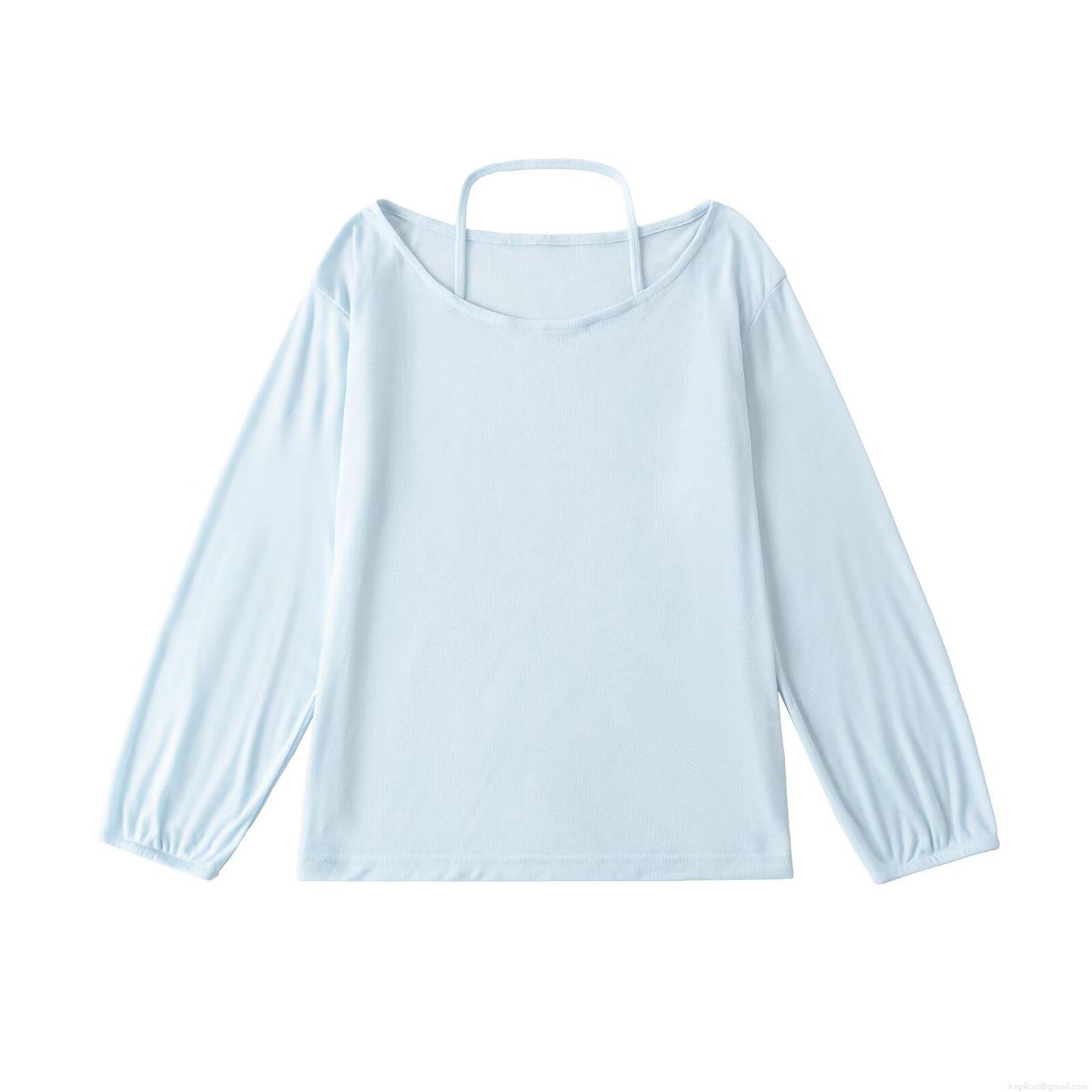 • Women's Sexy Cold Shoulder Long Sleeve T-Shirt Polyester Solid Color Round Neck Top With Hanging Neck Strap Fake Two Piece Streetwear Tee