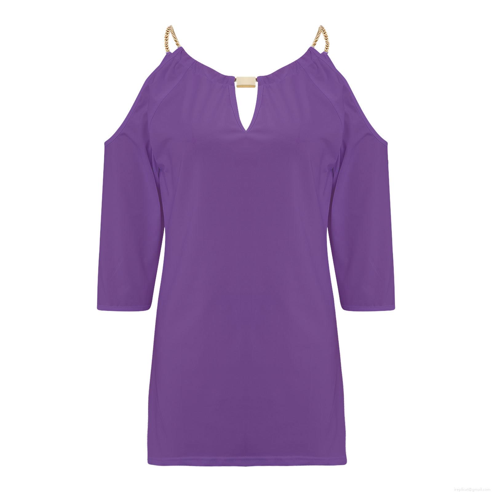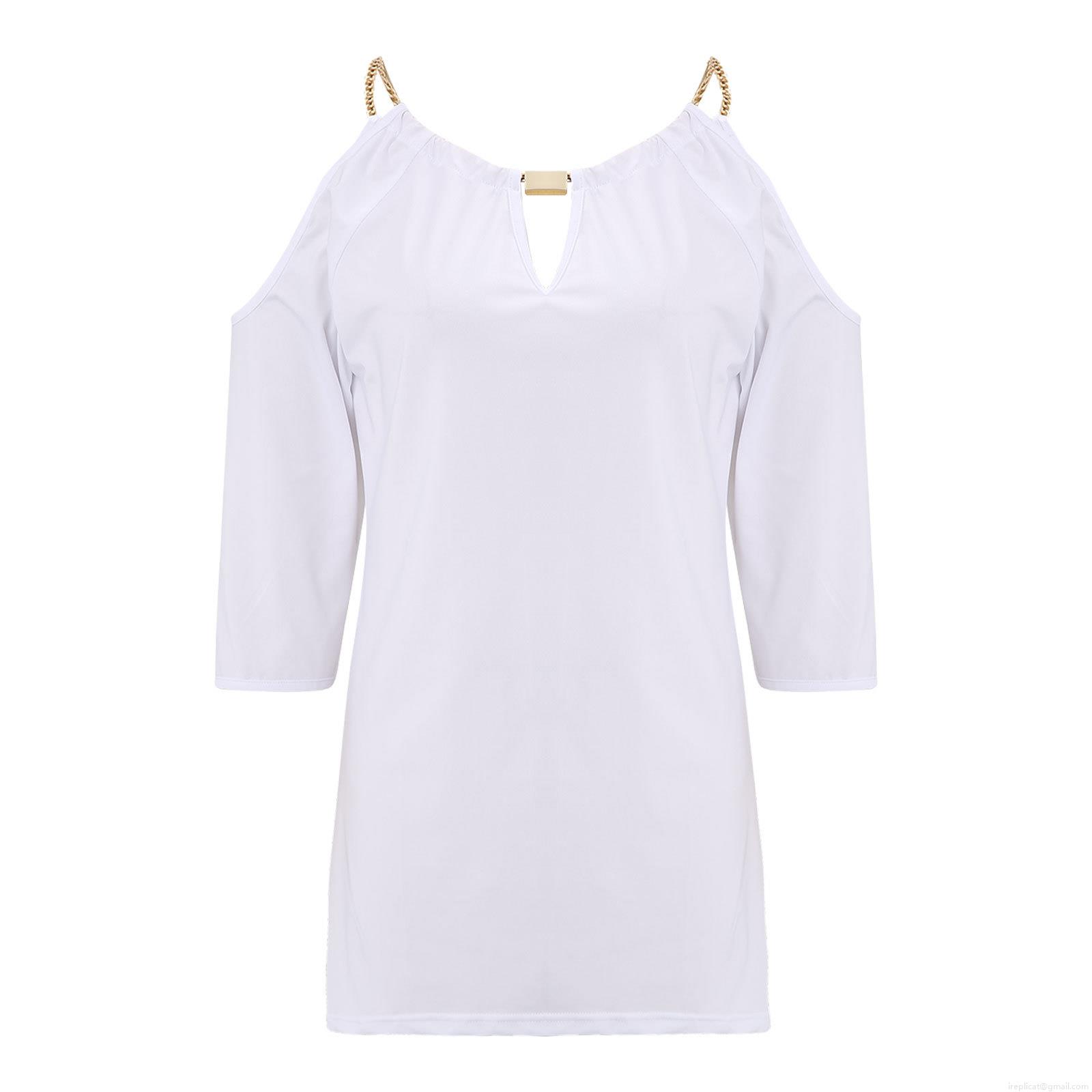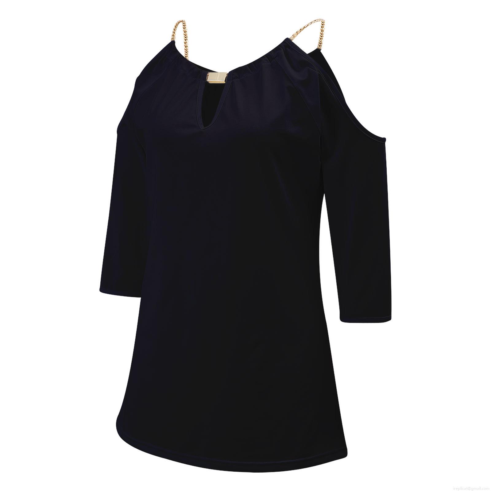 • Women's Sexy Cold Shoulder T-Shirt With Gold Chain Straps Polyester Spandex V-Neck Keyhole 3/4 Sleeve Slim Fit Top For Summer Party Daily Wear