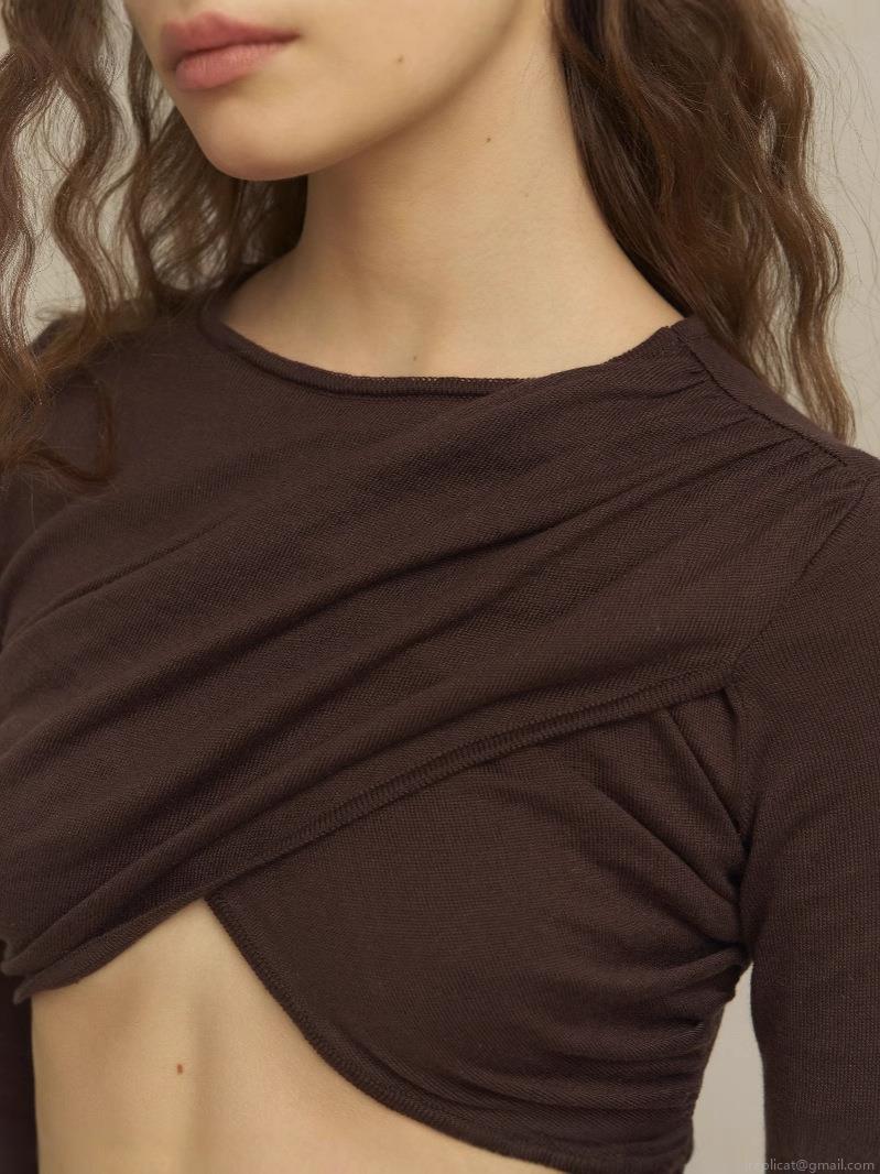 Women's Sexy Crossover Crop Top Knitted Cotton Wool Blend Long Sleeve Slim Fit T-shirt Trendy Spring Streetwear Solid Color Basic Blouse