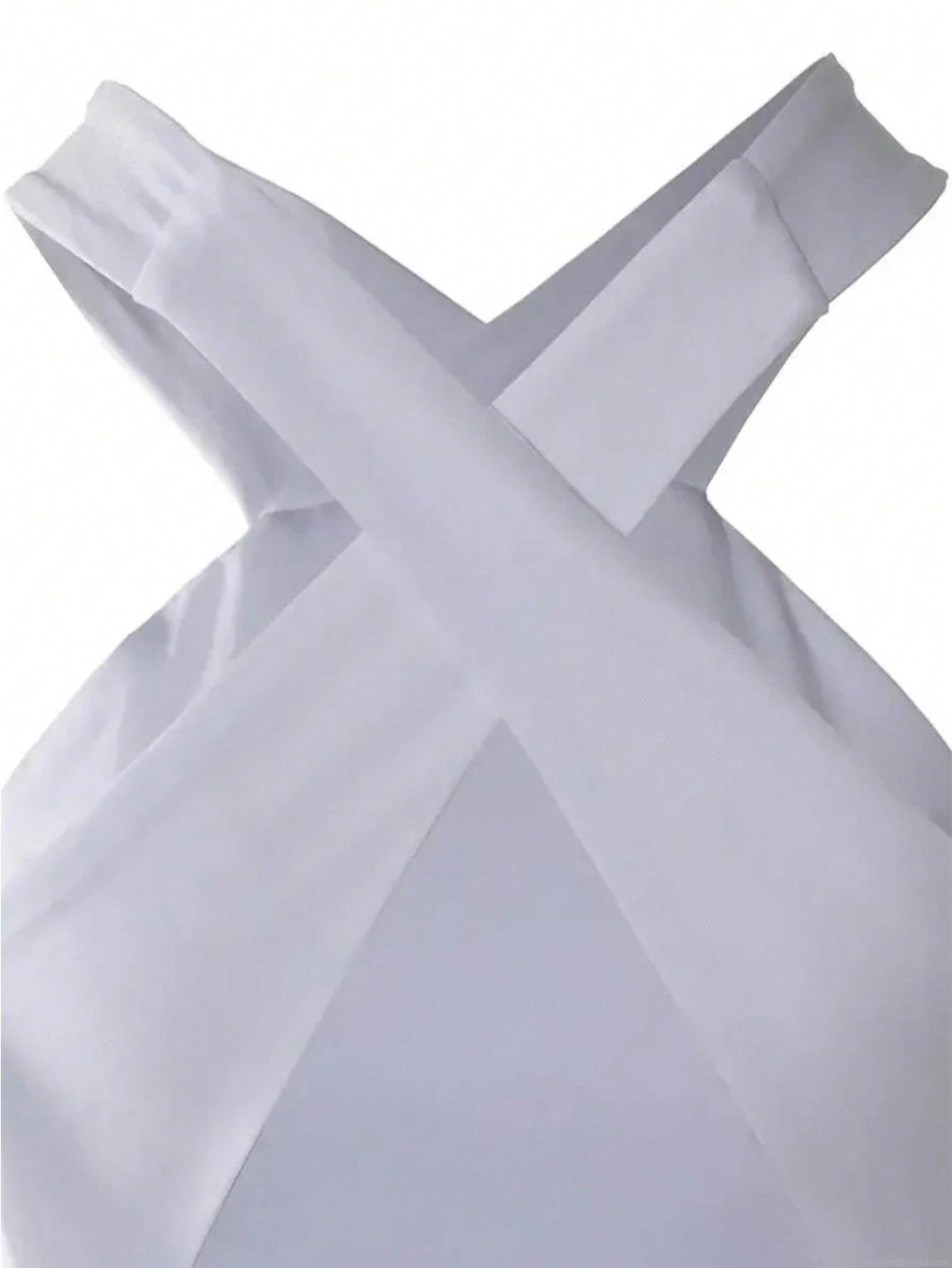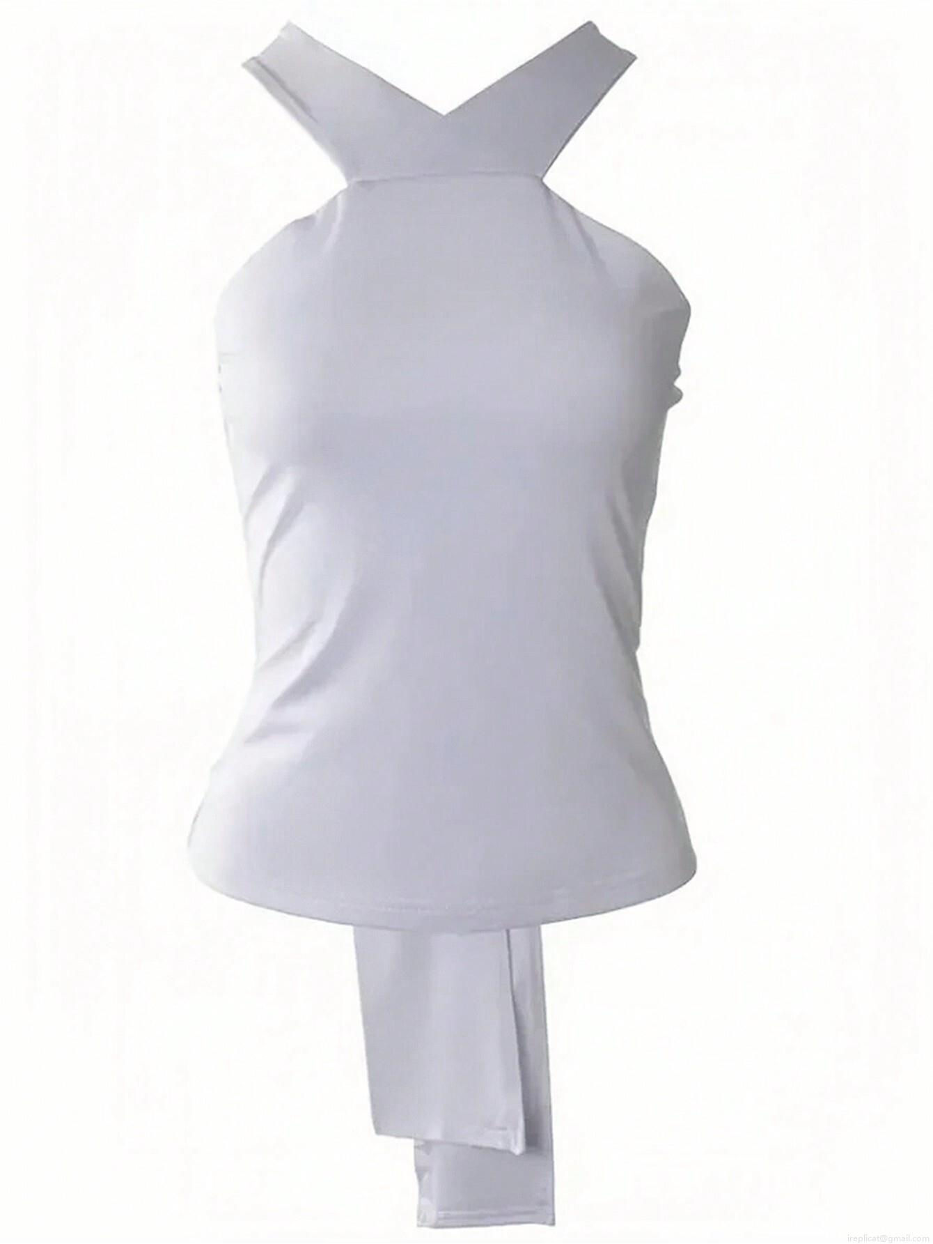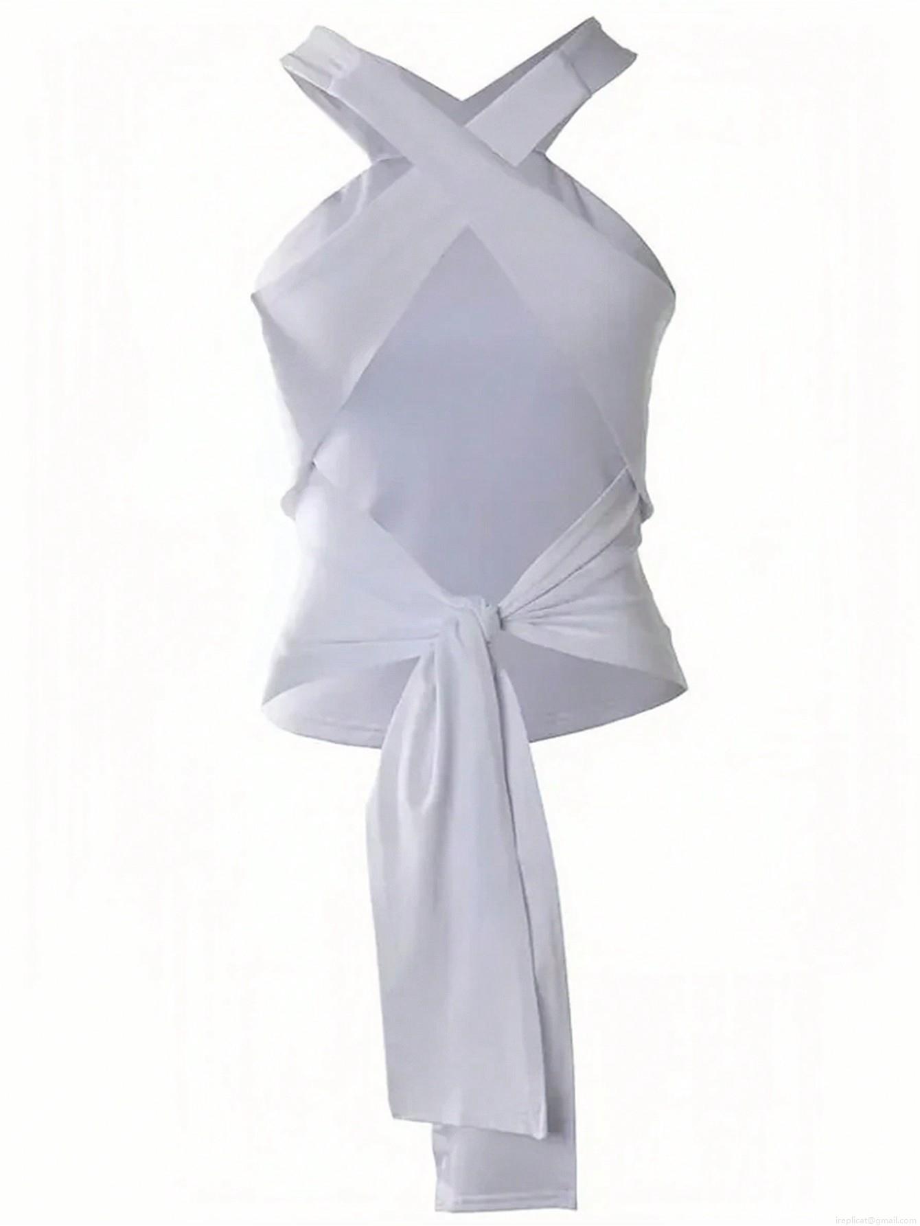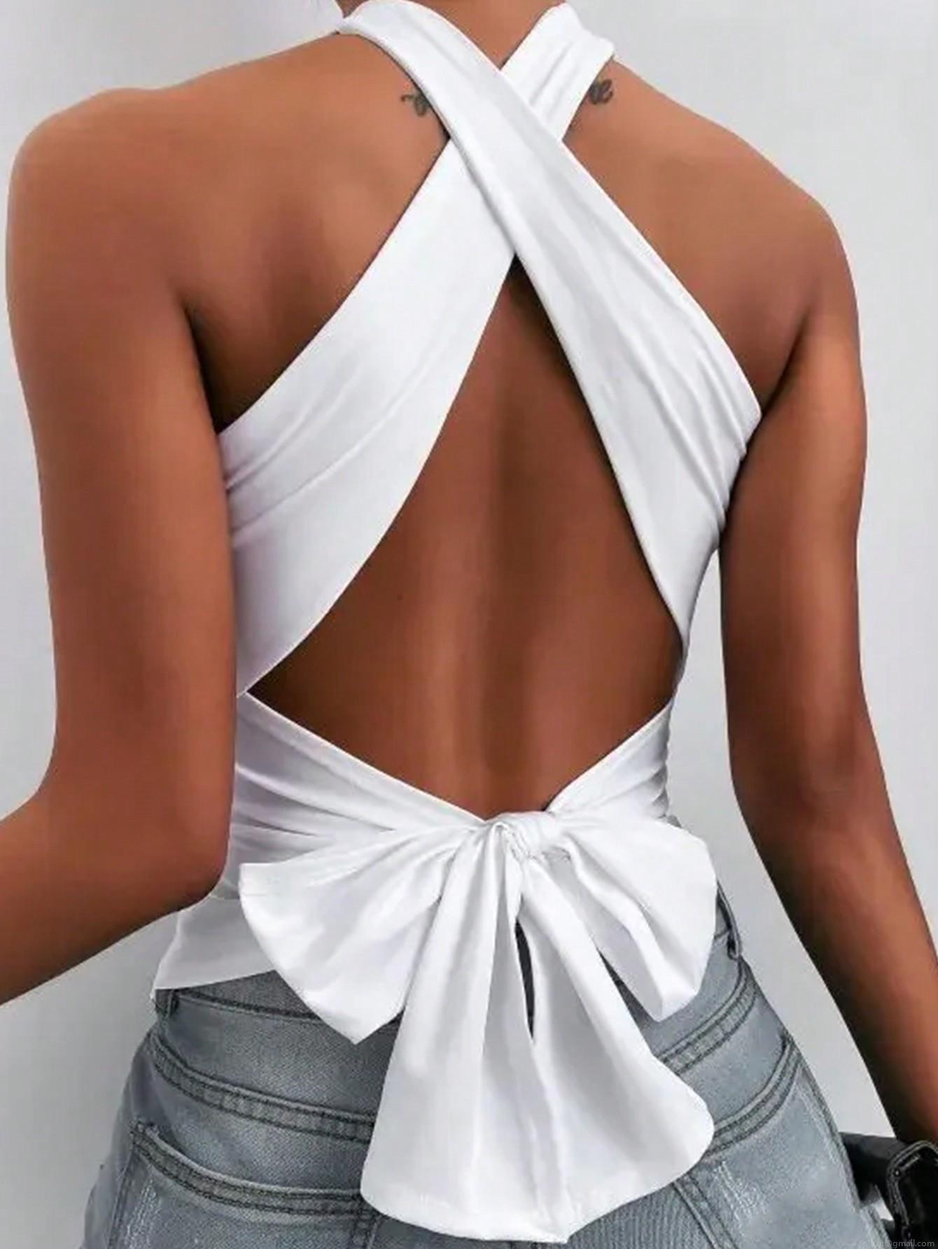 • Women's Sexy Halter Neck Crop Top Cross Over Backless Slim Fit Sleeveless Ribbed Tank Top With Bow Tie Back For Summer Party