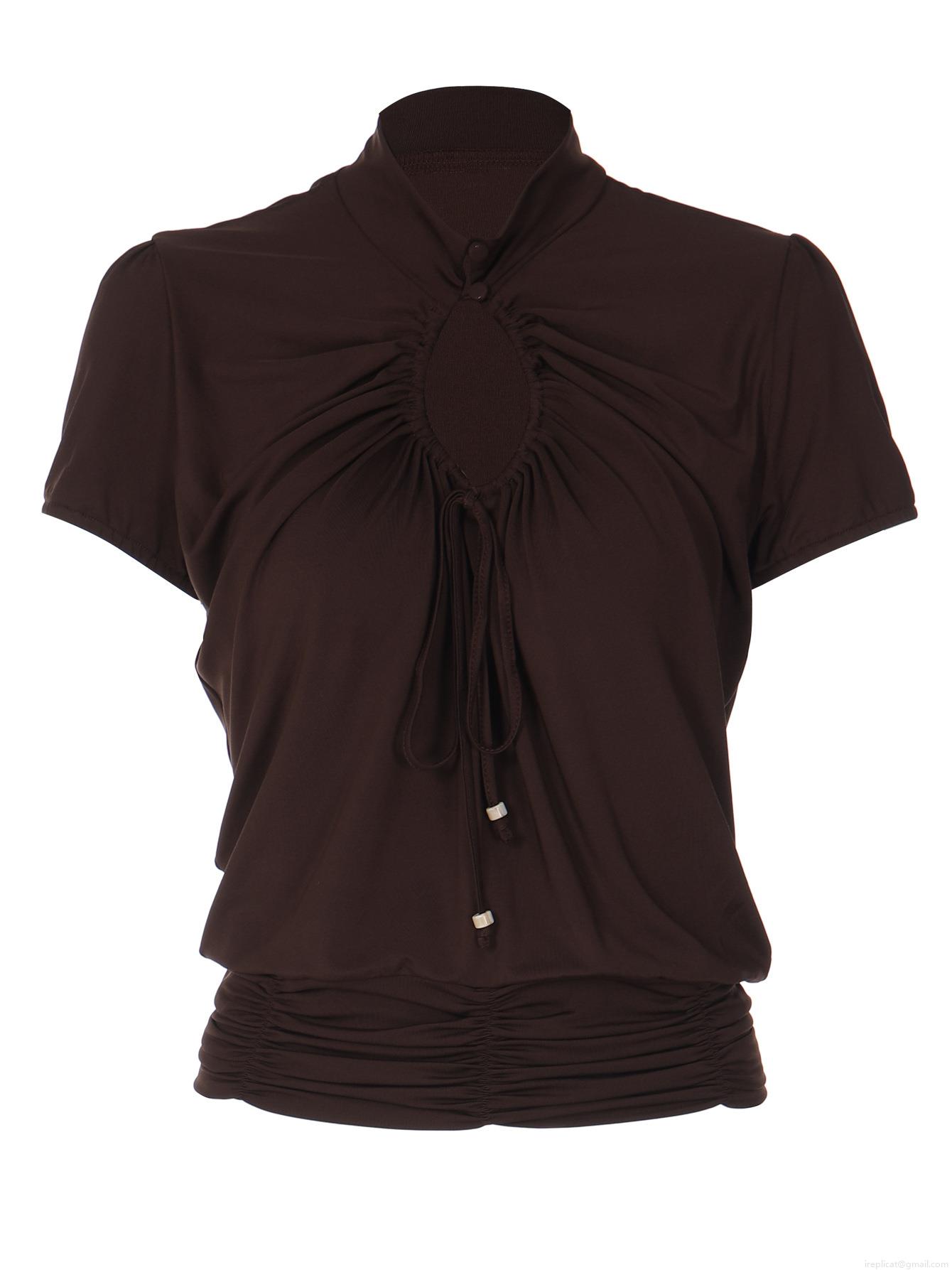 • Women's Sexy Hollow Out Drawstring Ruched T-Shirt French Style Slim Fit Short Sleeve Top High Neck Polyester Spandex Blouse Streetwear