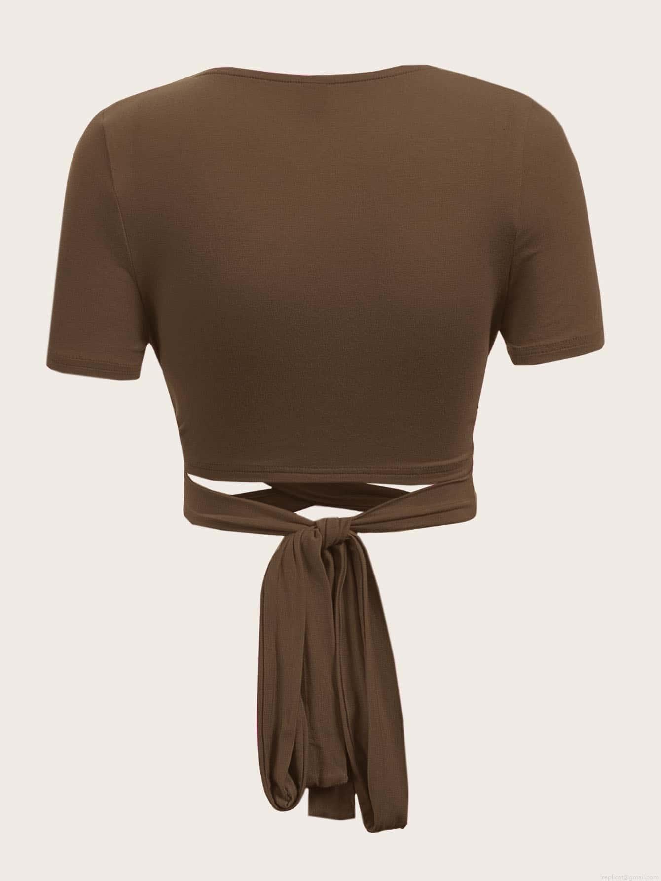 • Women's Sexy Knit Crop Top V Neck Twist Front Cut Out Cross Waist Tie Short Sleeve Slim Fit Cotton Blend T-Shirt Summer Solid Color Tee