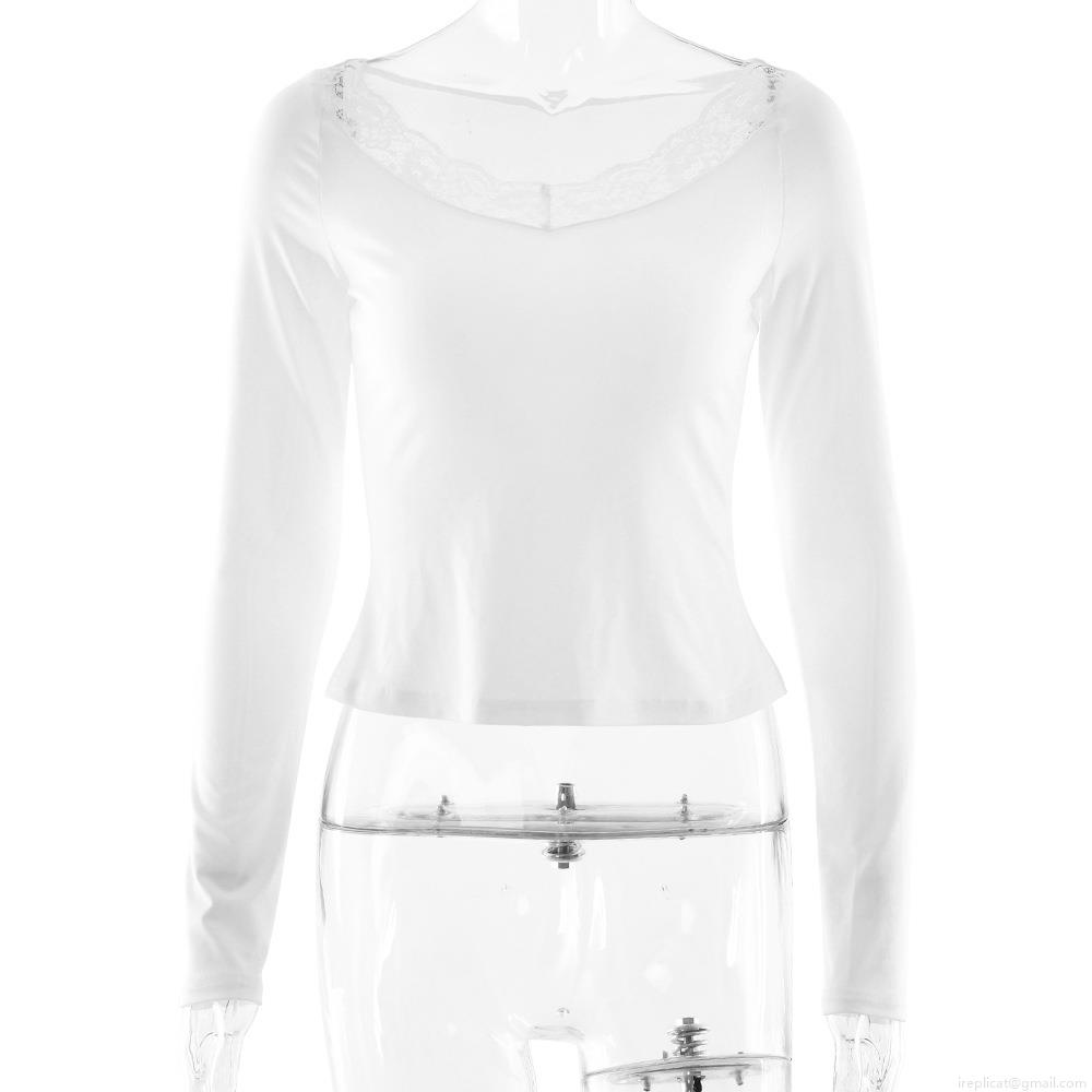 • Women's Sexy Lace V-Neck Long Sleeve T-Shirt Slim Fit Milk Silk Patchwork Ribbed Base Layer Top For Daily Dating Hot Girl Style
