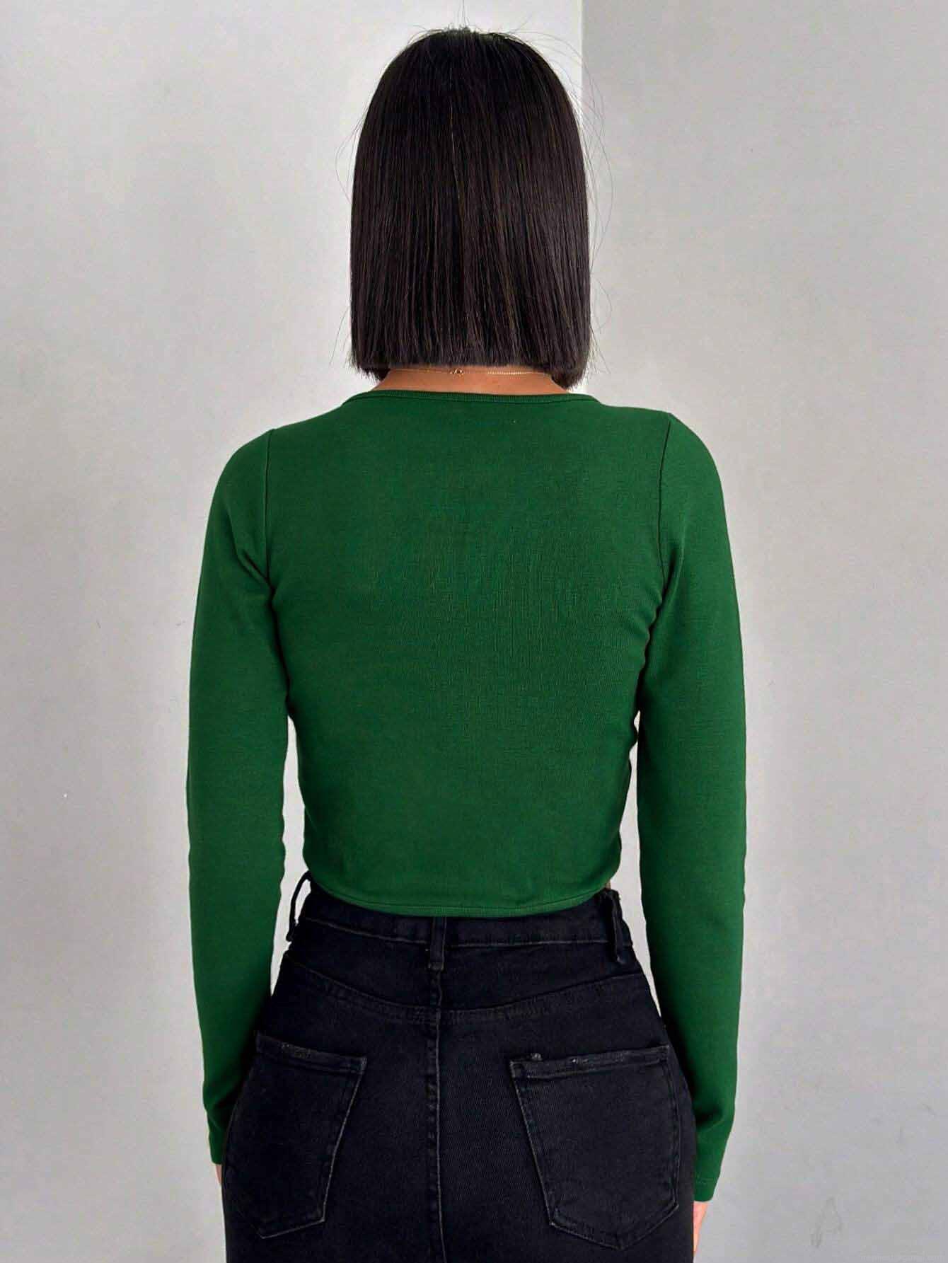Solid Color, Long Sleeves, Navel Exposed, Knot Design