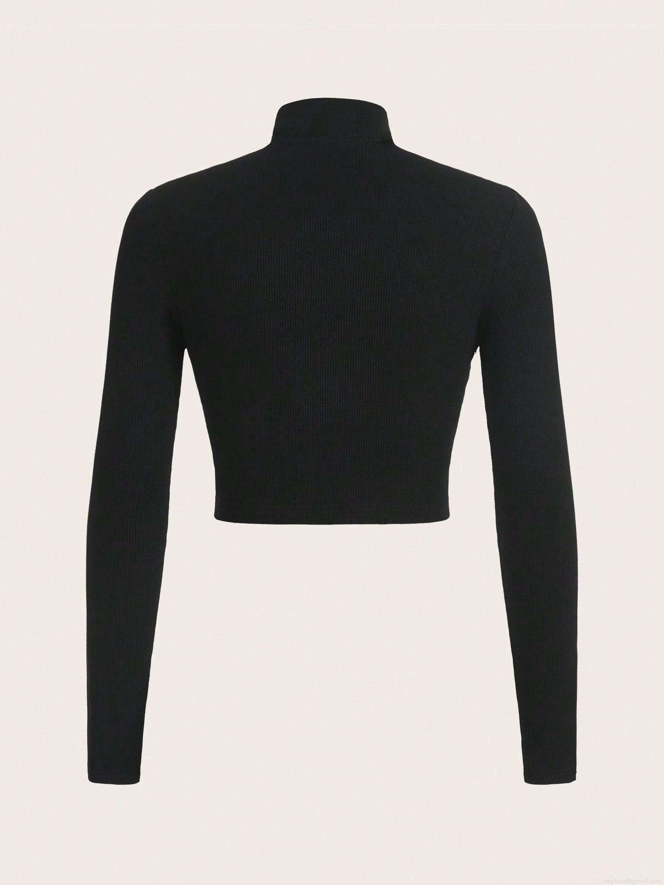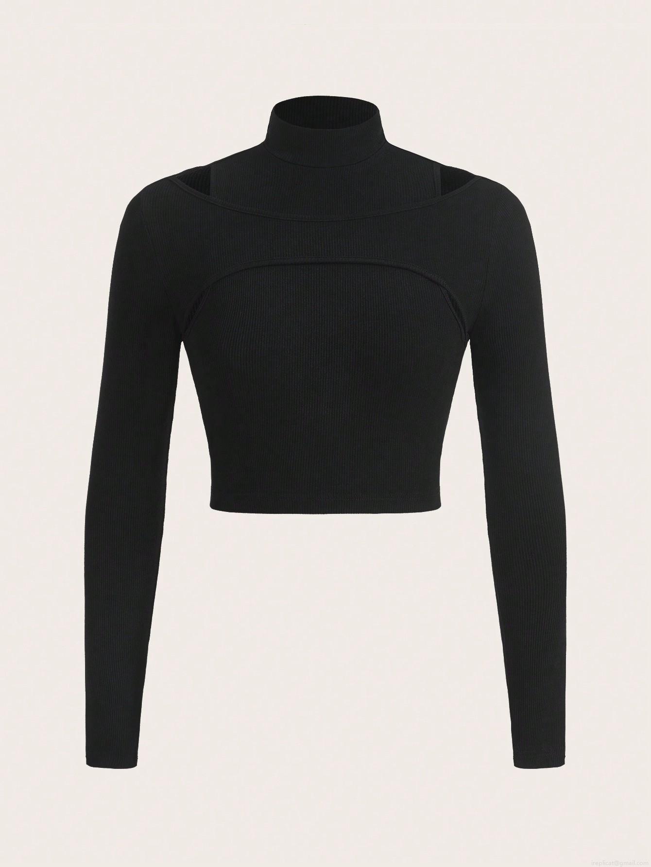 • Women's Sexy Mock Neck Hollow Out Knit T-Shirt Elegant Viscose Polyester Ribbed Long Sleeve Slim Fit Crop Top For Party Daily Commute