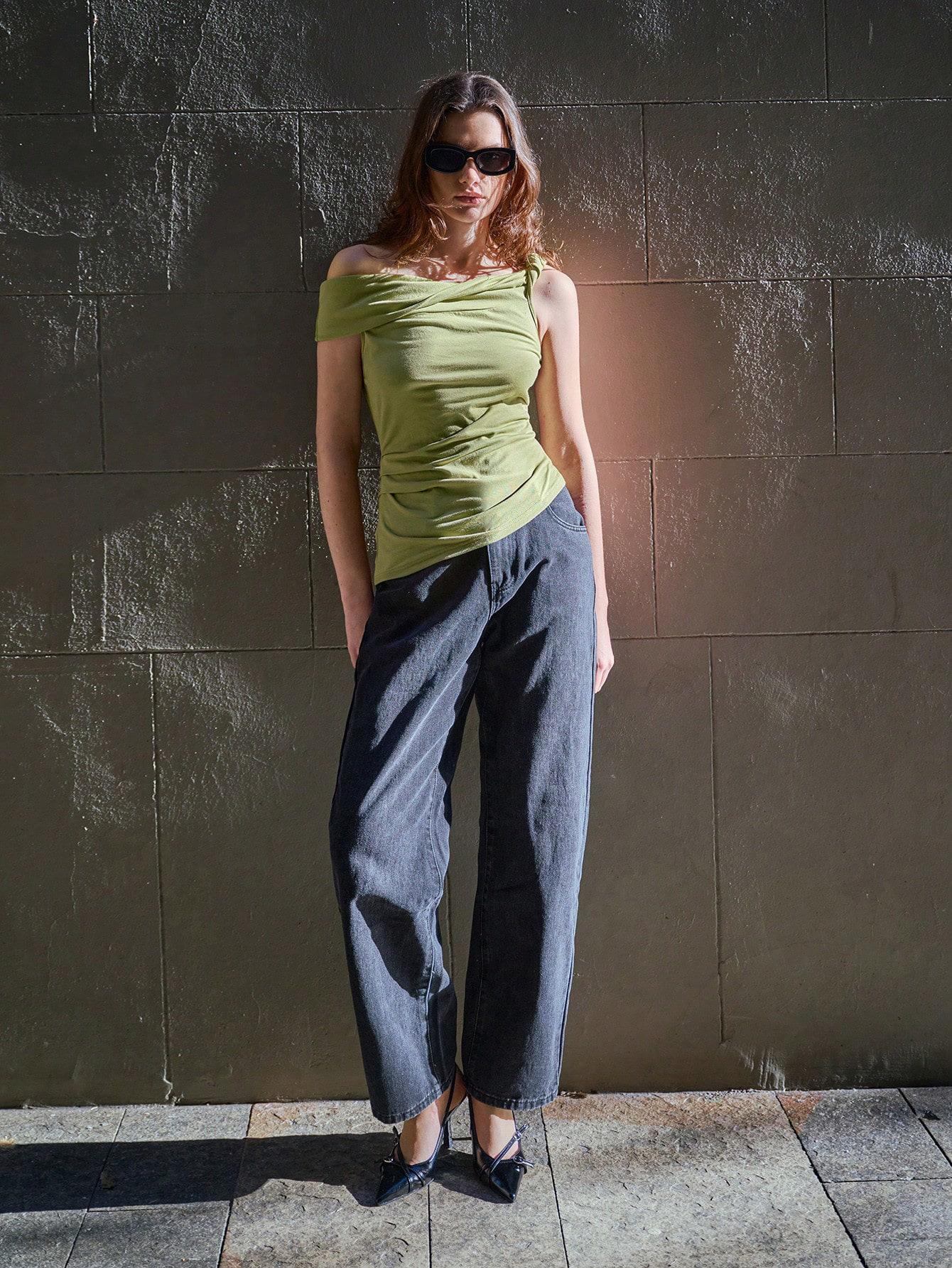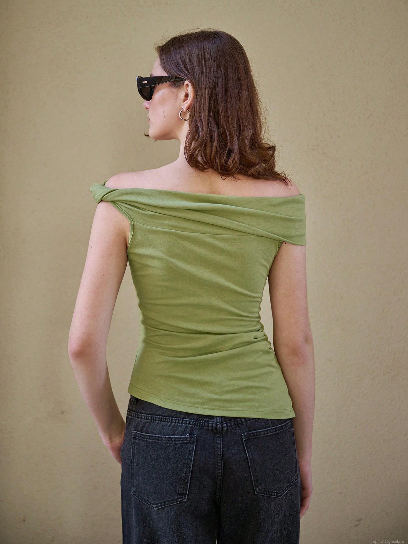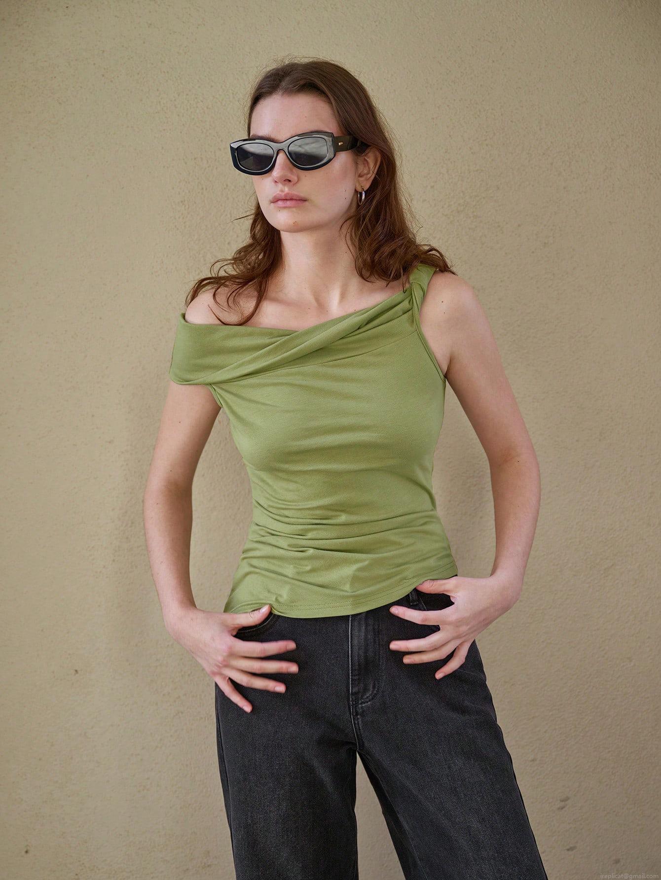 • Women's Sexy Off Shoulder Ruched Tank Top Asymmetrical Solid Color Slim Fit Polyester Blend Sleeveless T-Shirt For Summer Party Daily Wear
