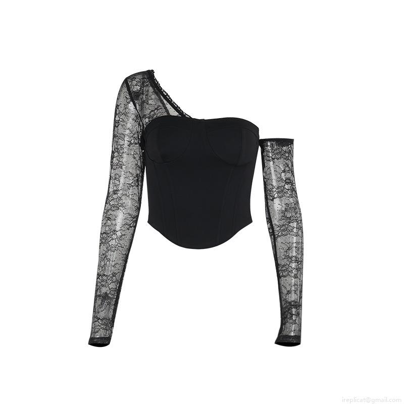 • Women's Sexy One Shoulder Lace Patchwork Top Long Sleeve Slim Fit Corset Style T-Shirt Elegant Hollow Out Floral Lace Blouse For Party Clubwear