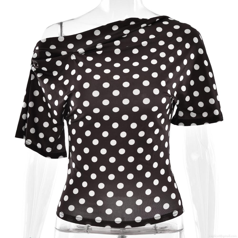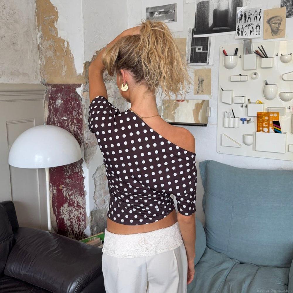 • Women's Sexy Polka Dot One Shoulder T-Shirt Polyester Milk Silk Slim Fit Waist Hugging Short Sleeve Top For Summer Party Streetwear