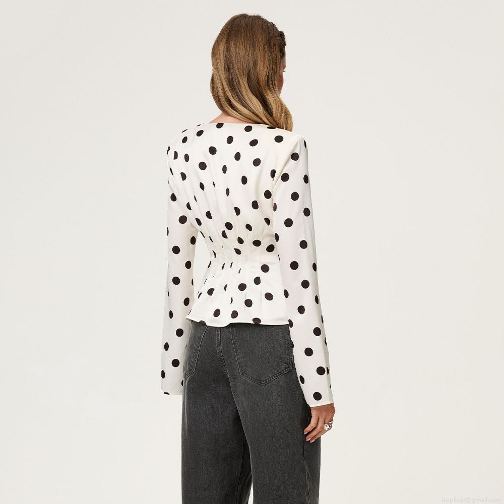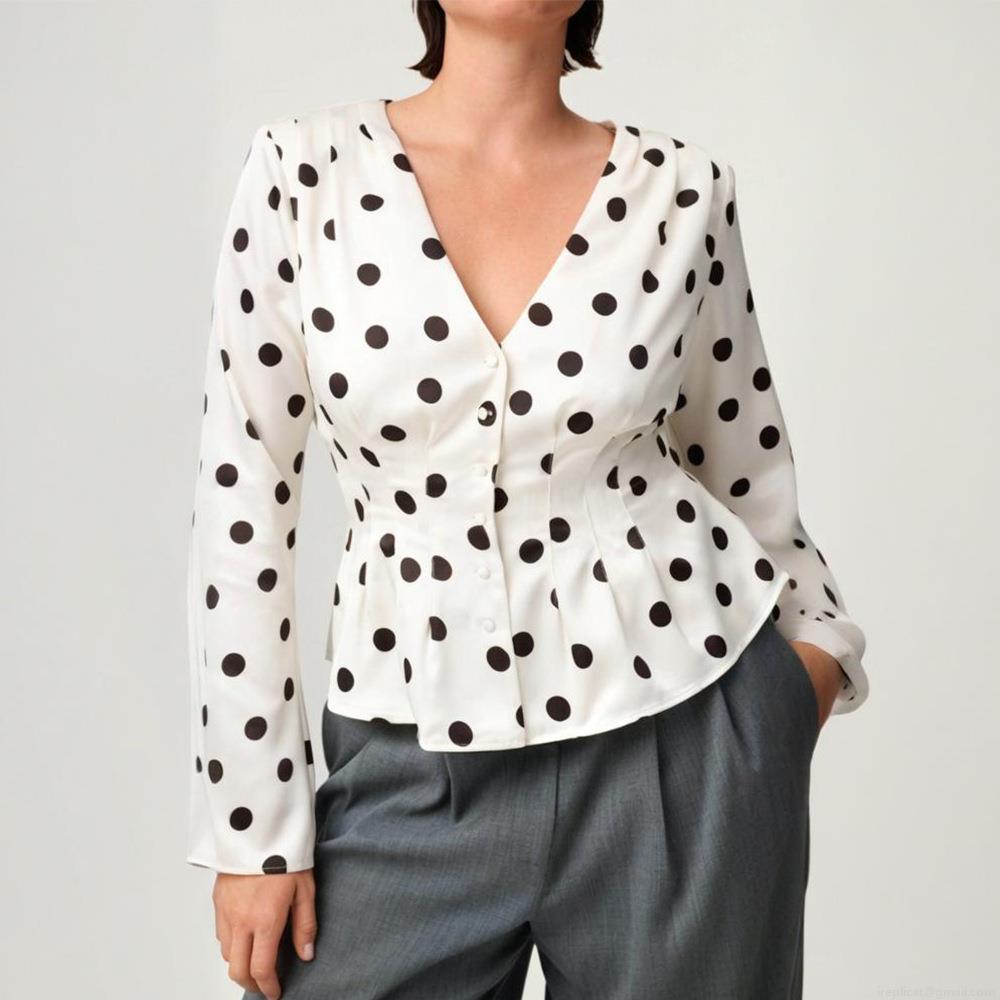 • Women's Sexy Polka Dot V-Neck Peplum T-Shirt Long Sleeve Button Down Pleated Slim Fit Blouse Top For Daily Party Streetwear