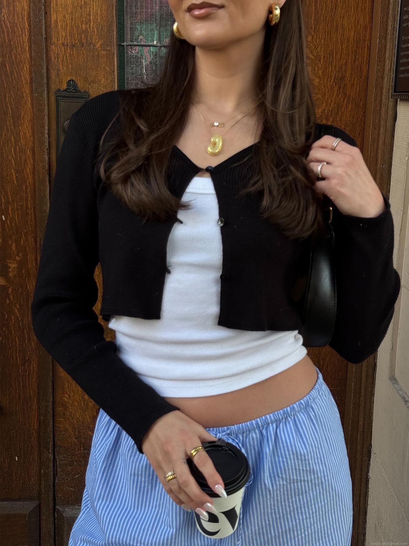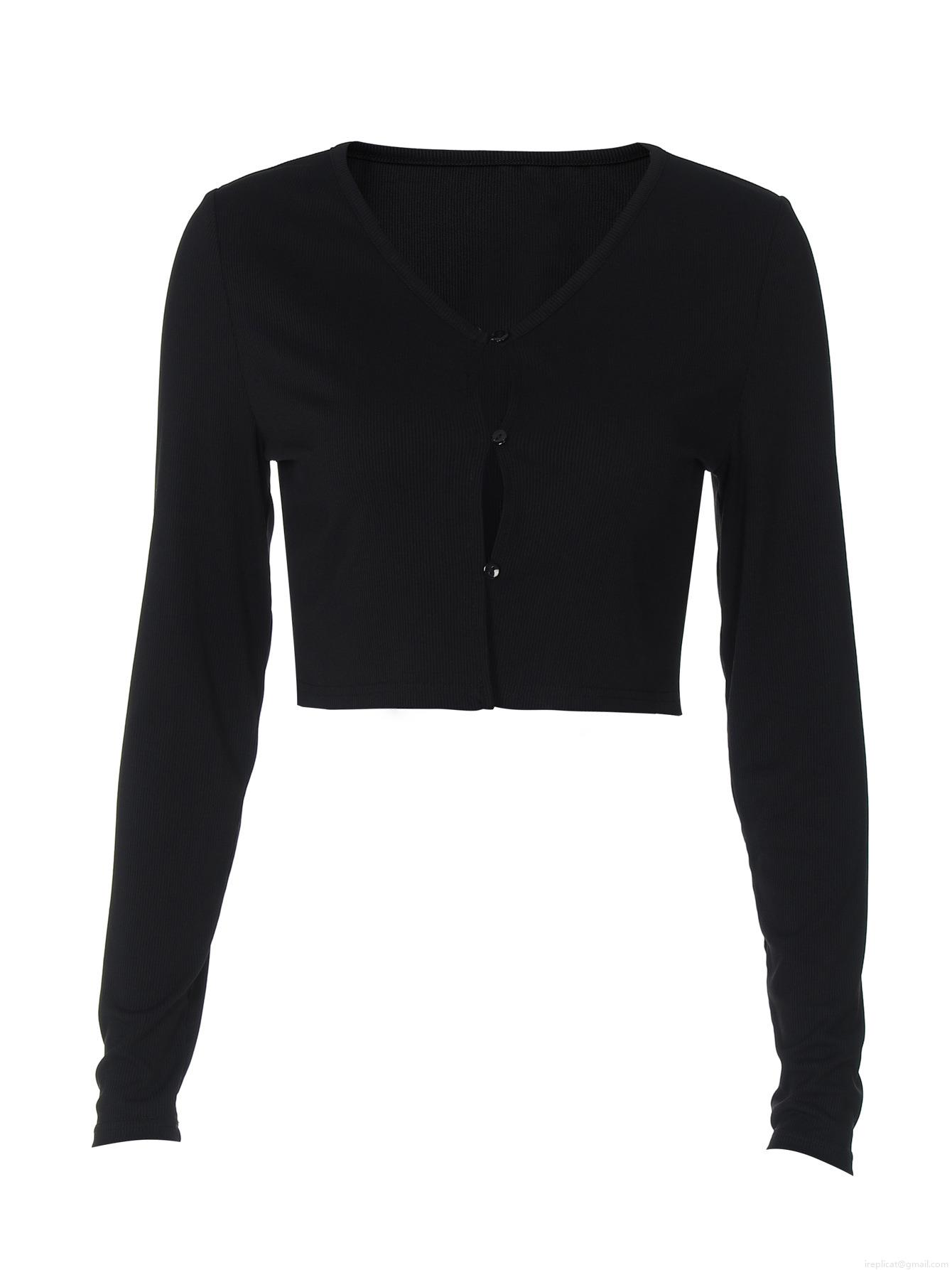• Women's Sexy Ribbed Knit Cropped Cardigan Button Down Long Sleeve V Neck T-Shirt Slim Fit Casual Streetwear Summer Autumn Lightweight Breathable Fashion Top