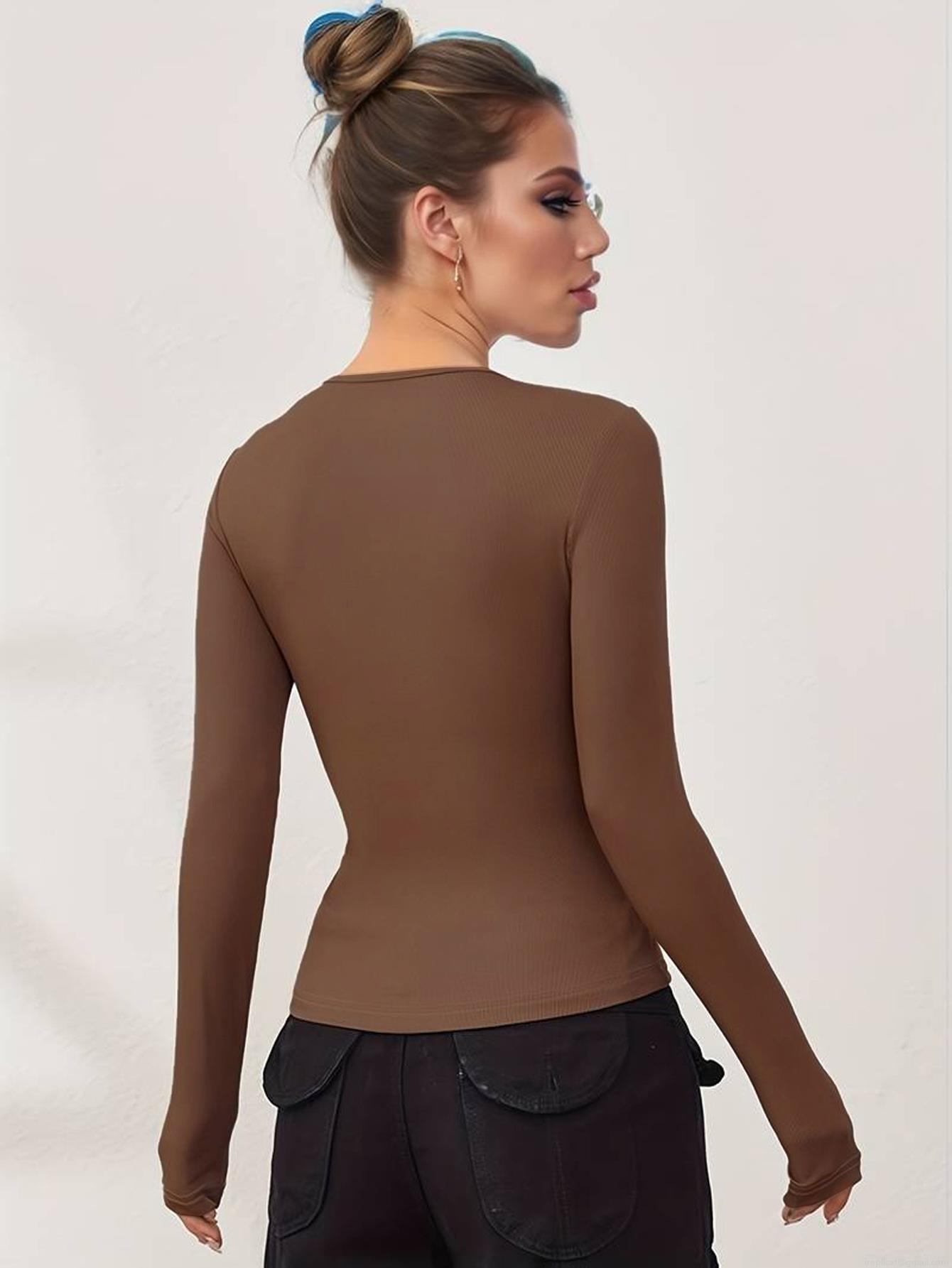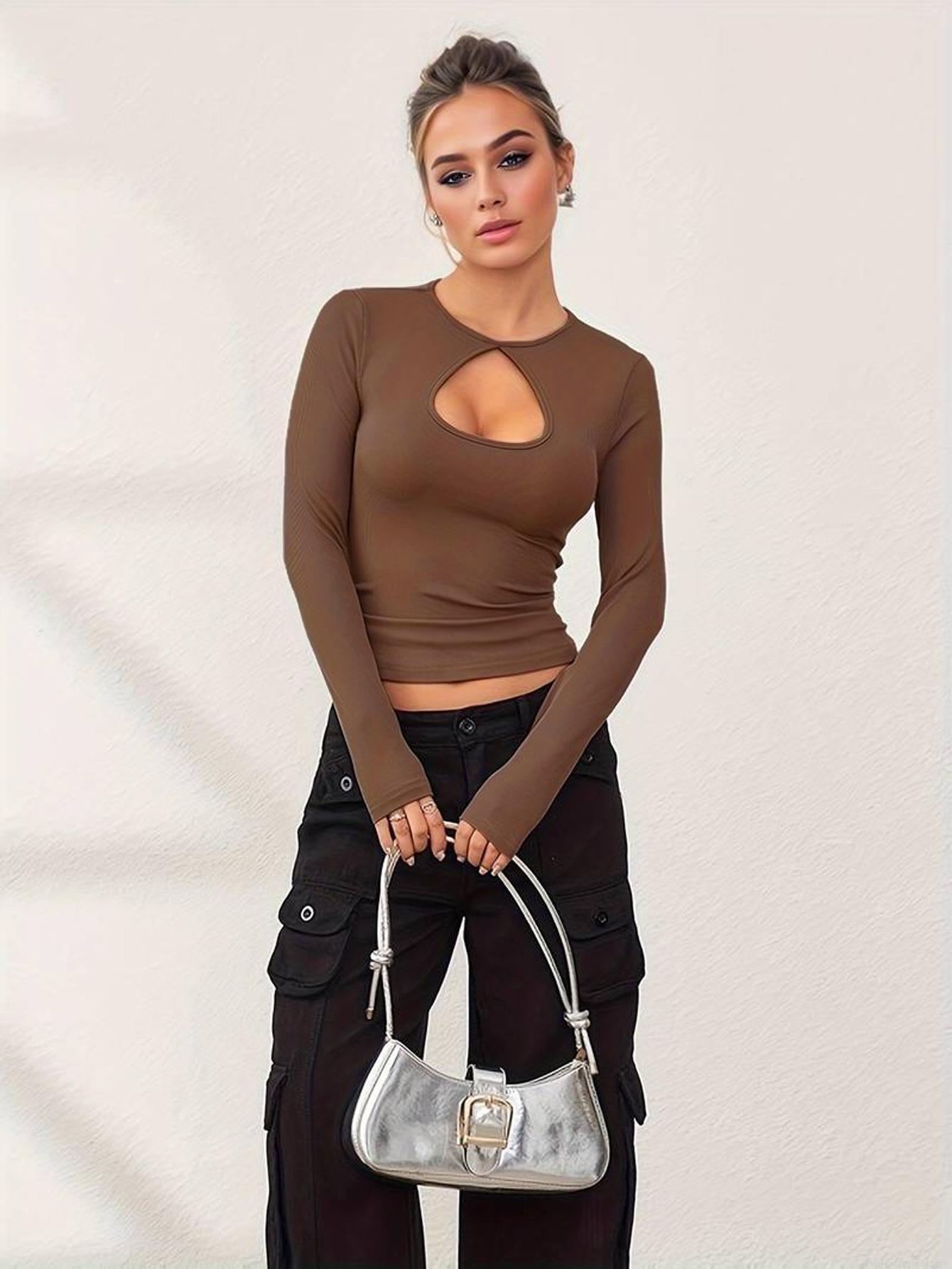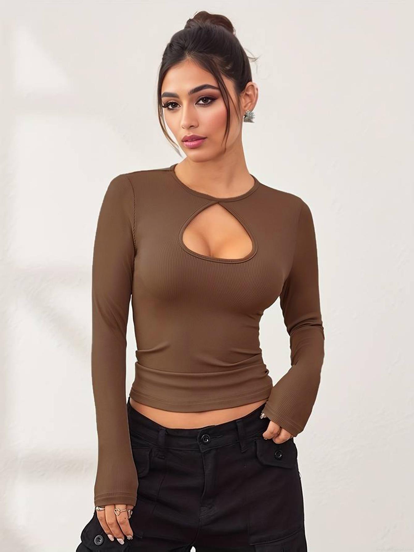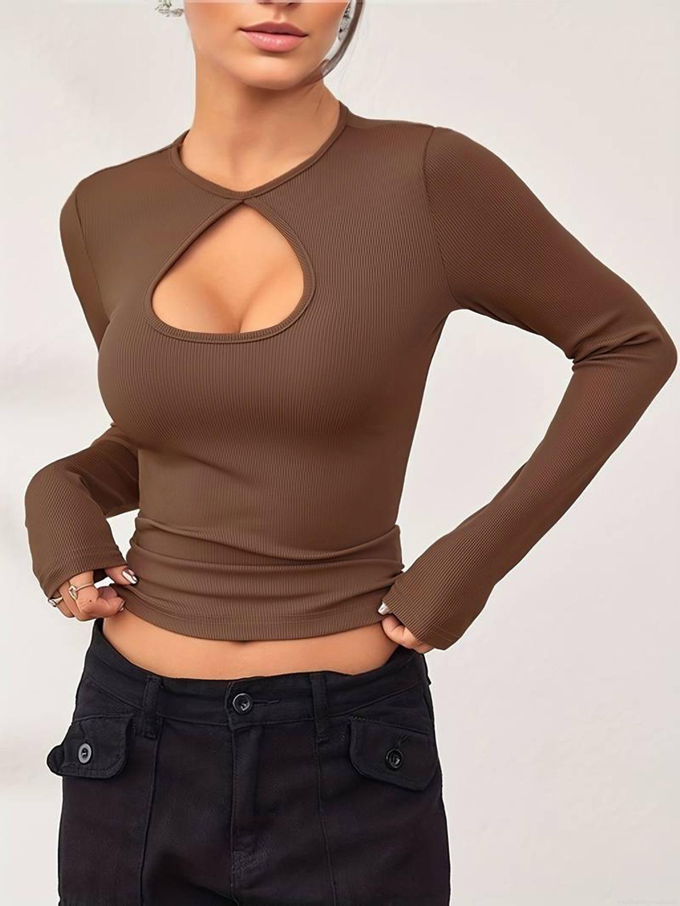 • Women's Sexy Ribbed Knit Long Sleeve T-Shirt Hollow Out Cut Out Chest Slim Fit Solid Color Polyester Elastane Pullover Top For Casual Party Night