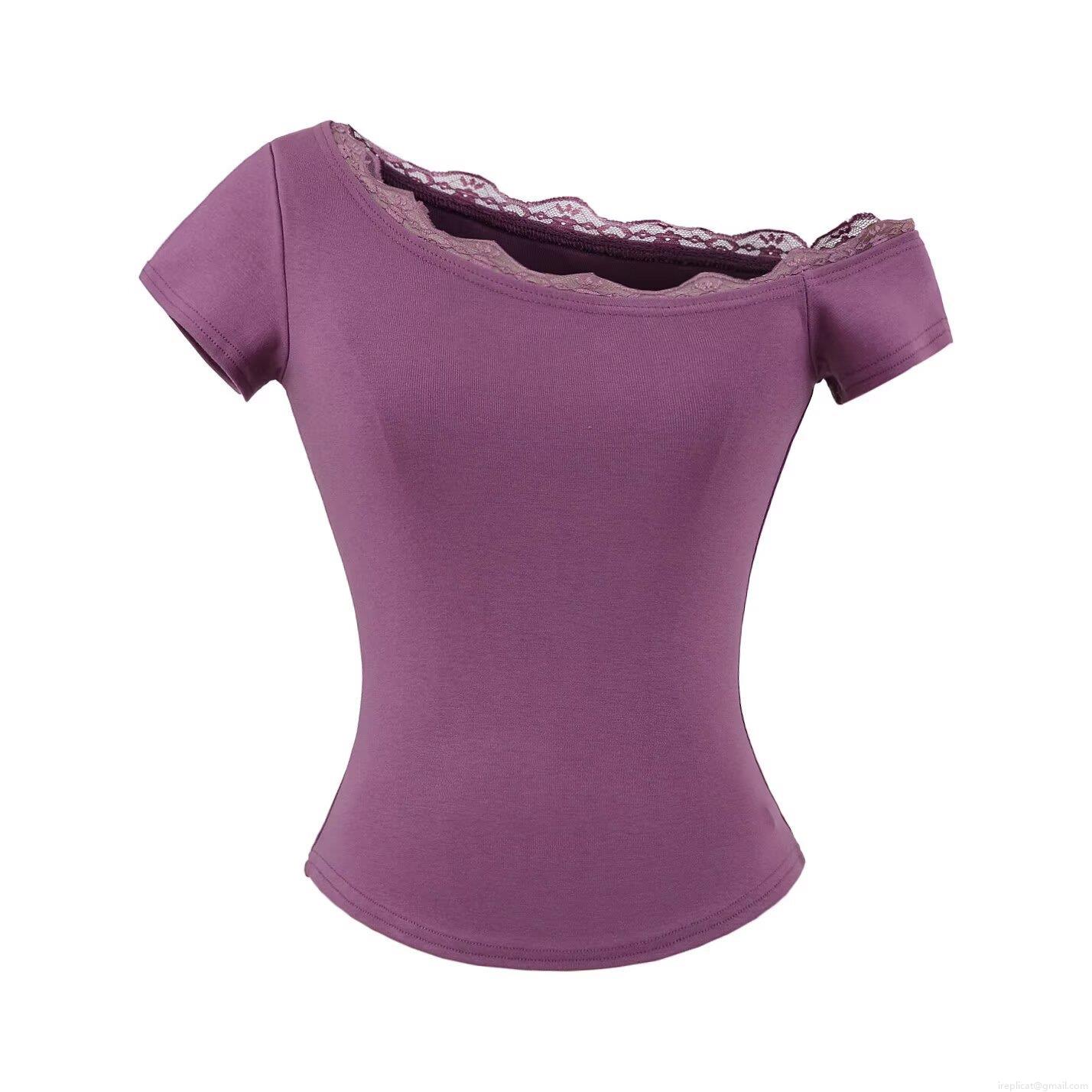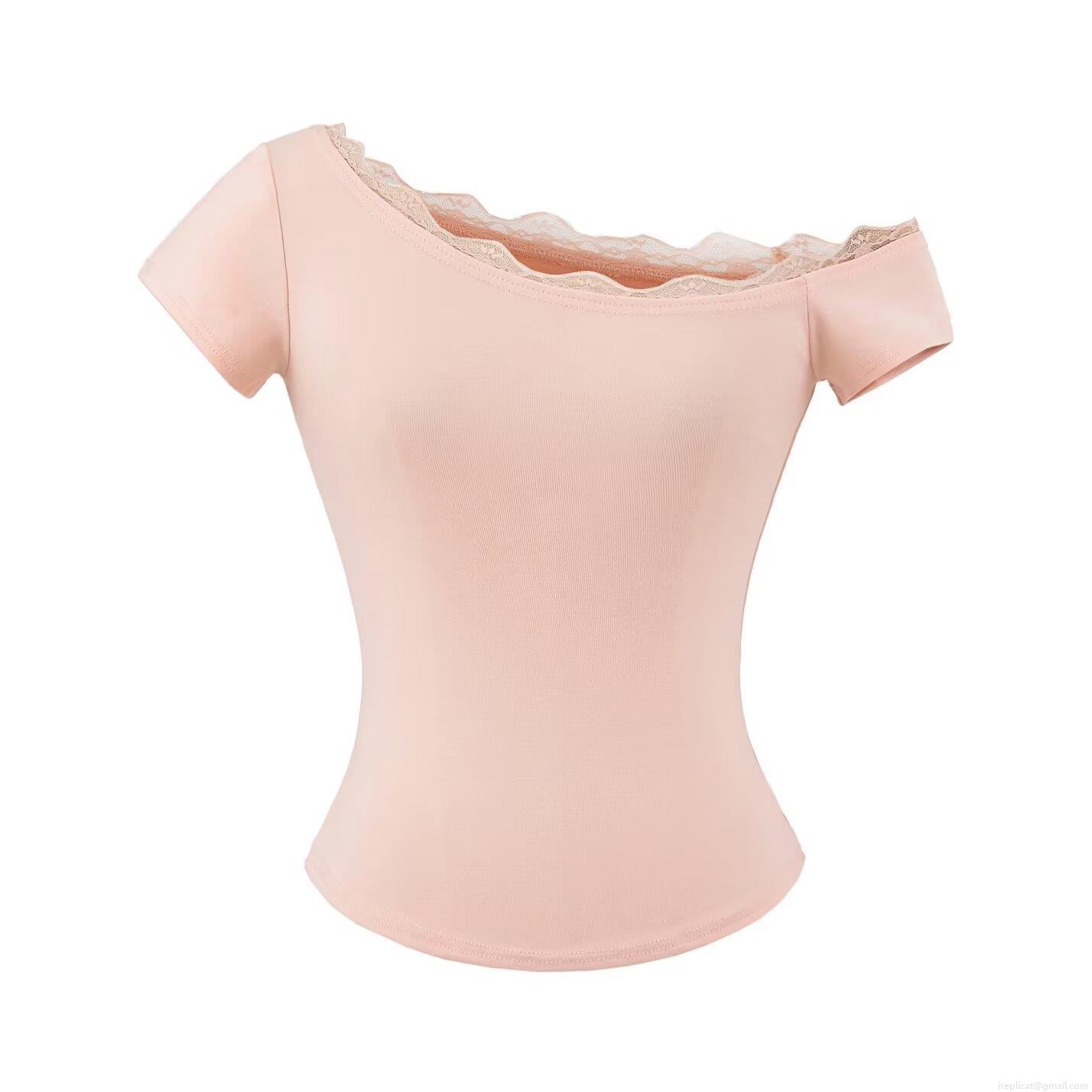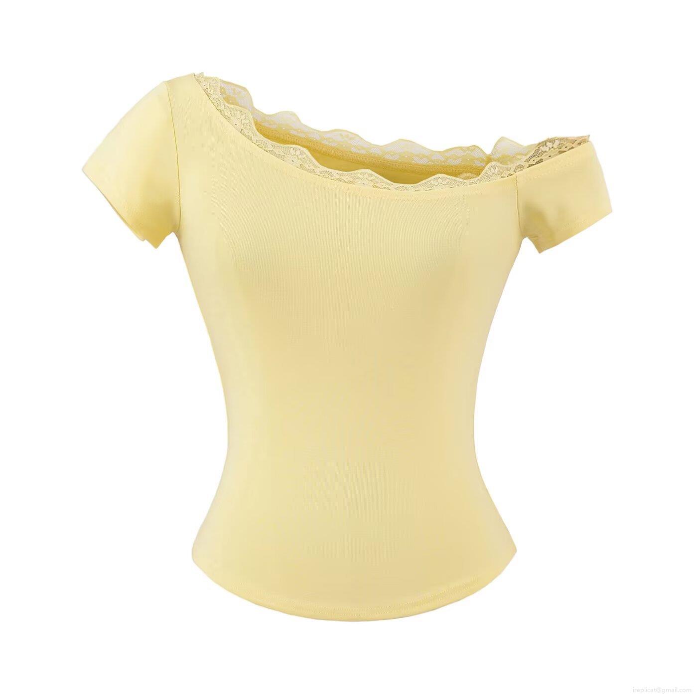 • Women's Sexy Slant Neck Lace Patchwork Short Sleeve T-Shirt Summer Off Shoulder Viscose Blend Slim Fit Top For Daily Streetwear Party Lady Casual Tee