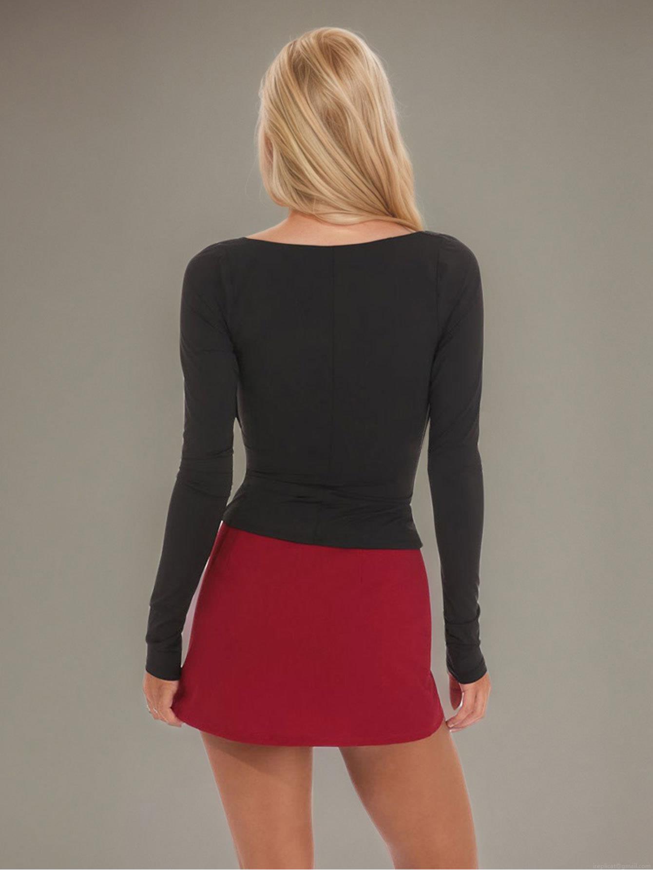 • Women's Sexy Slim Fit Polyester Long Sleeve T-Shirt Deep V-Neck Twist Front Crop Top Streetwear Party Fashion Spicy Girl Style Casual Solid Black Top For Women