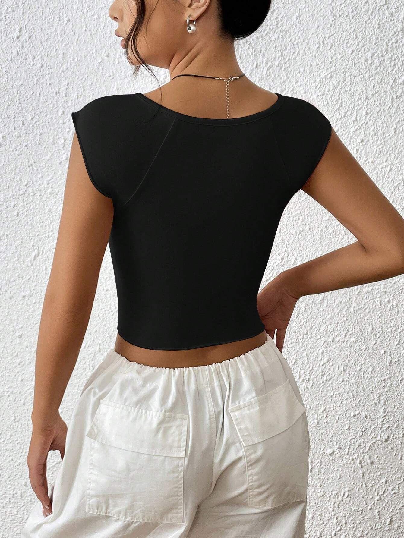 • Women's Sexy Slim Fit Ruched V Neck Crop Top Streetwear Short Sleeve Split Hem Polyester Elastane Solid Color T-Shirt Summer Fashion Soft Tee