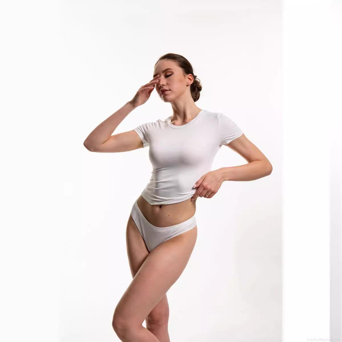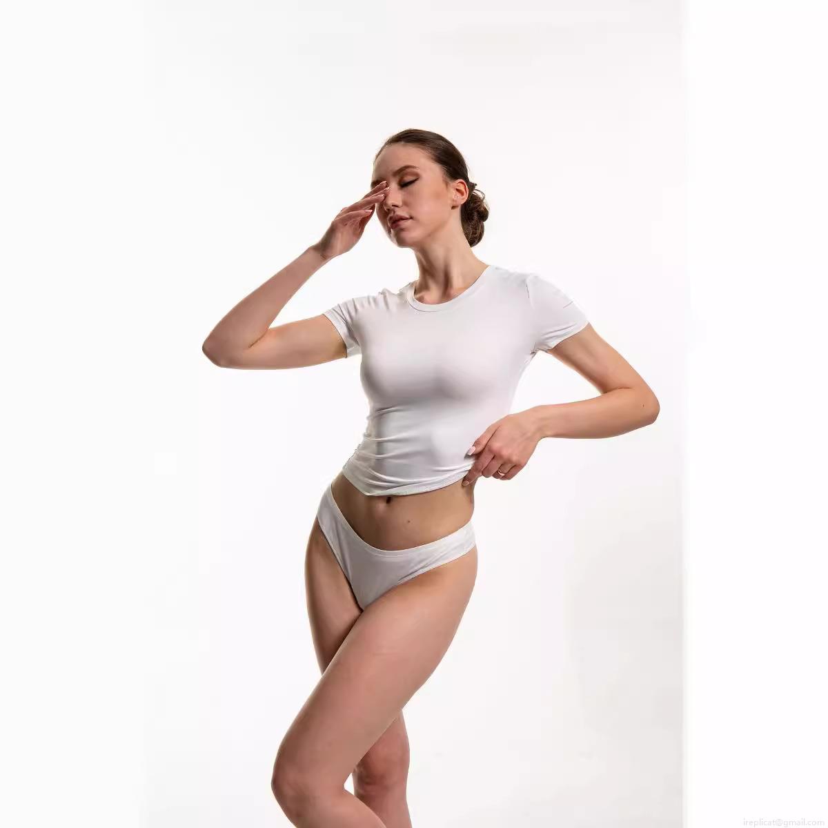 Women's Sexy Slim Fit White Short Sleeve T-Shirt And Panty Set Round Neck Solid Color Polyester Spandex Milk Silk Pullover Casual Streetwear Crop Top Set For Ladies