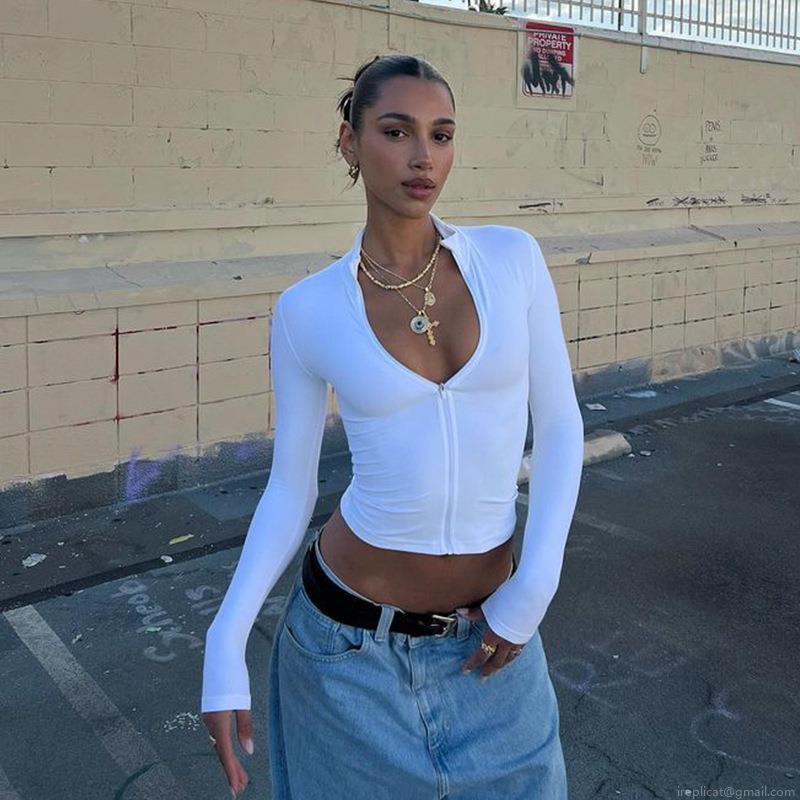 Solid Color, Short, Zipper, Navel Exposed, Self-cultivation