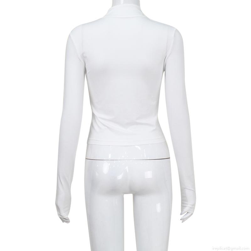 • Women's Sexy Slim Fit Zip Up Long Sleeve T-Shirt Mock Neck Solid Color Cropped Top Polyester Spandex Blend Aesthetic Streetwear Fashion Tee