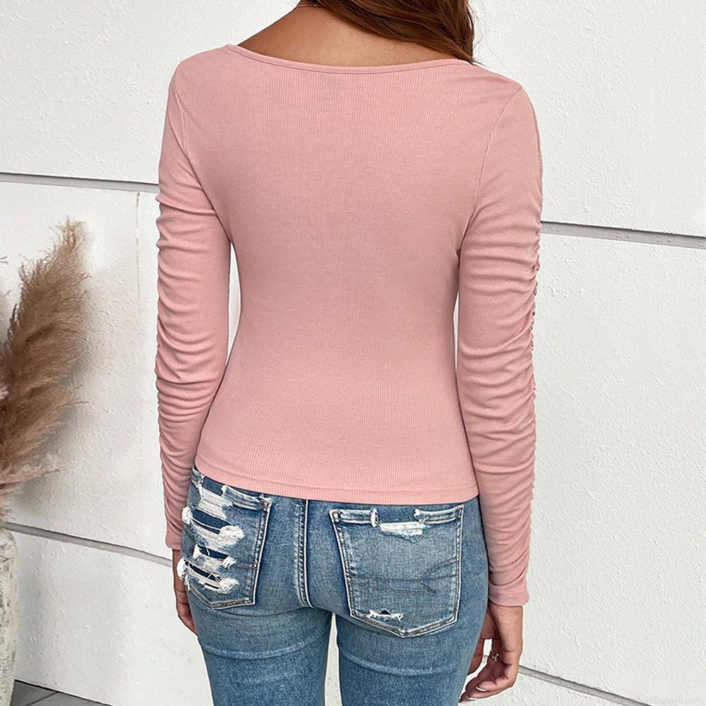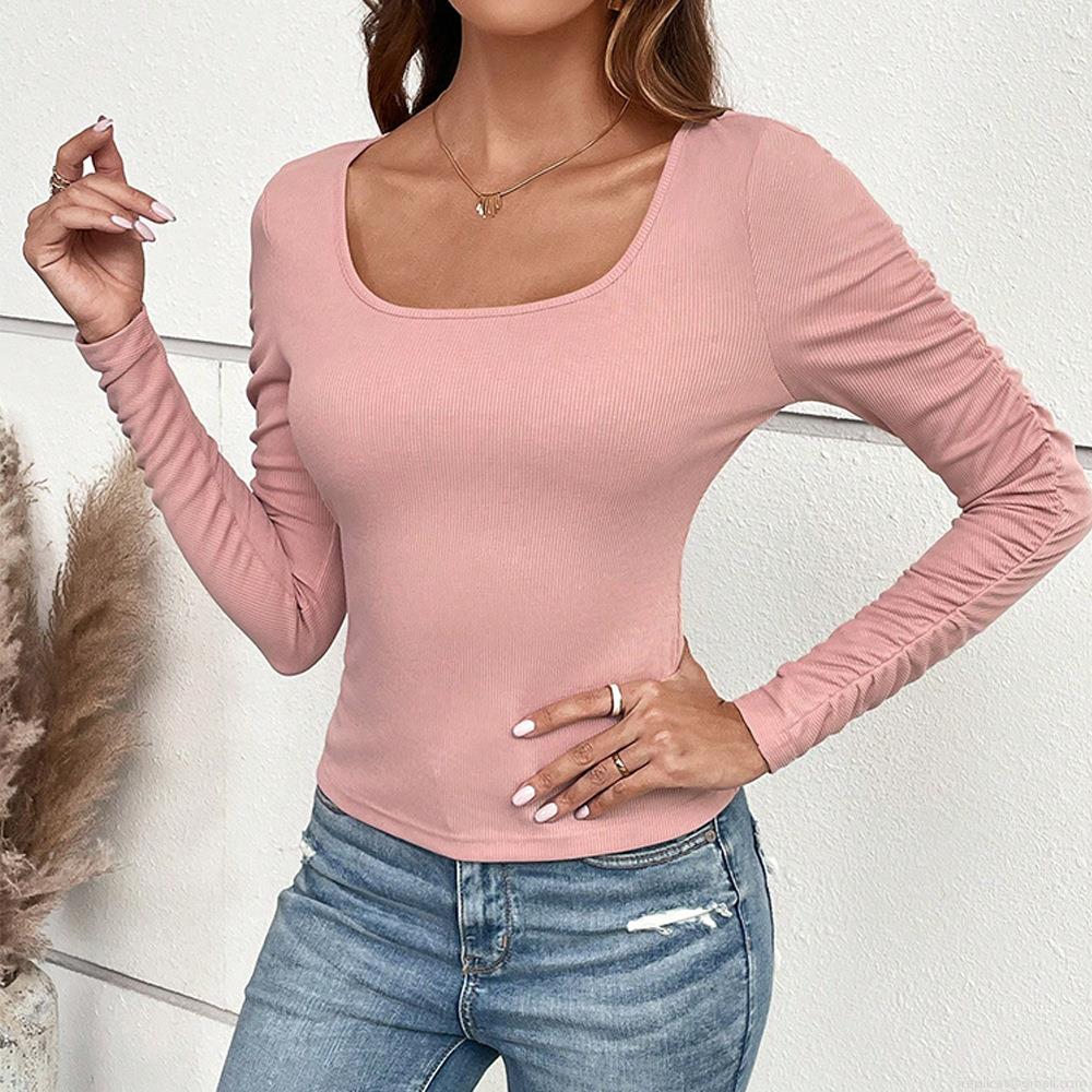• Women's Sexy Square Neck Slim Fit Long Sleeve T-Shirt Viscose Polyester Ribbed Knit Ruched Sleeve Top Casual Daily Basic Layering Tee