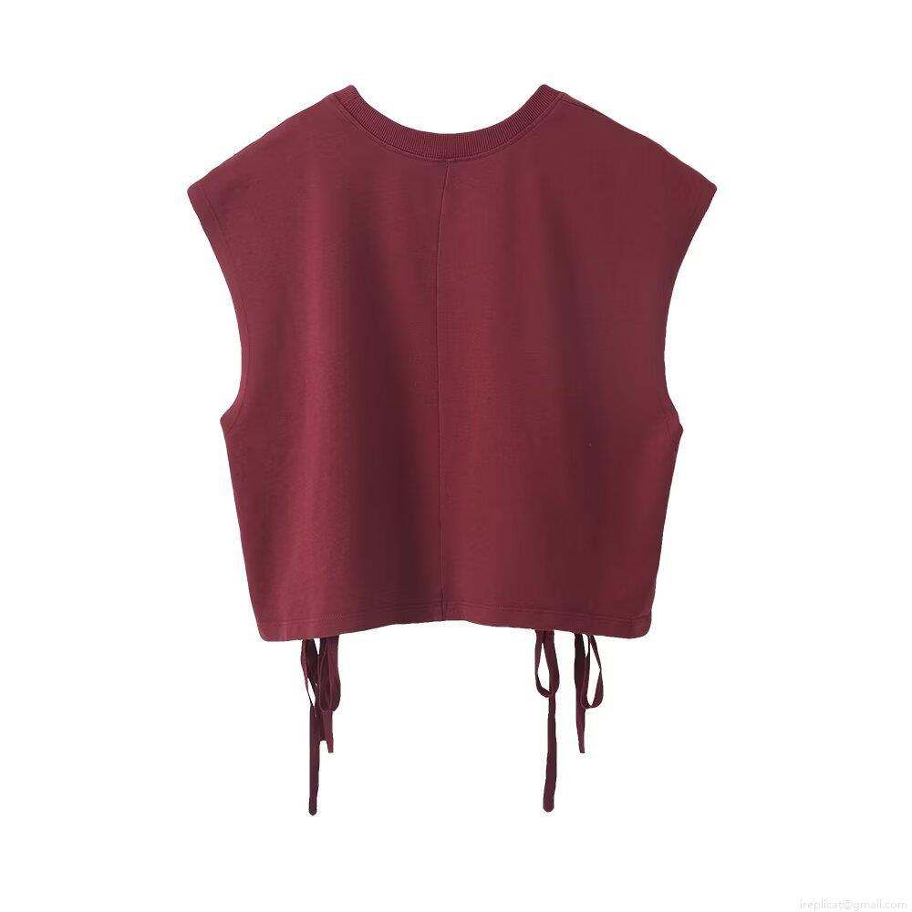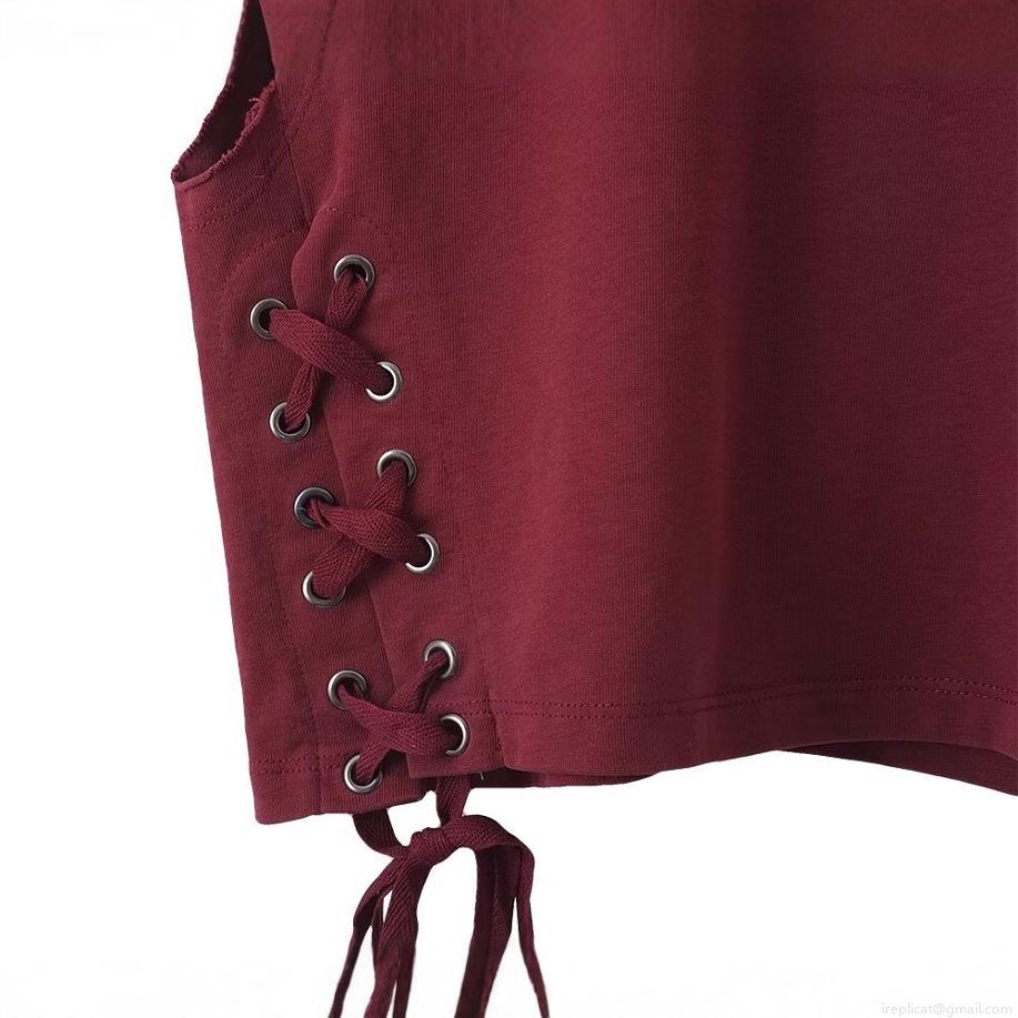 • Women's Sexy Wine Red Side Lace-Up Sleeveless T-Shirt Vest Round Neck Polyester Slim Fit Crop Top For Summer Daily Streetwear Casual Style