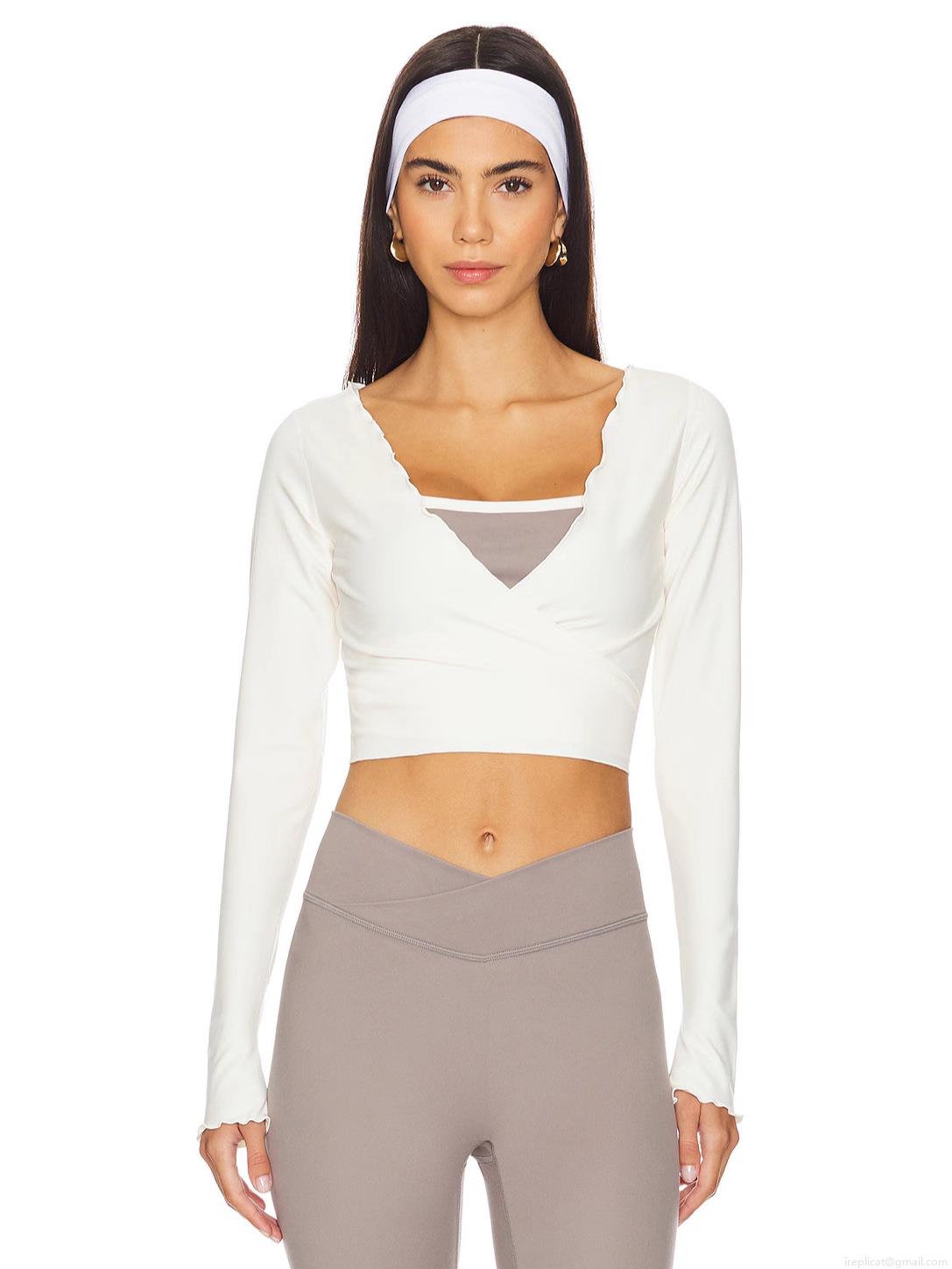 • Women's Sexy Wrap V Neck Crop Top Long Sleeve Tie Up T-Shirt Slim Fit Solid Color Yoga Athleisure Top For Women Party Clubwear High Elasticity Wrap Around Tee