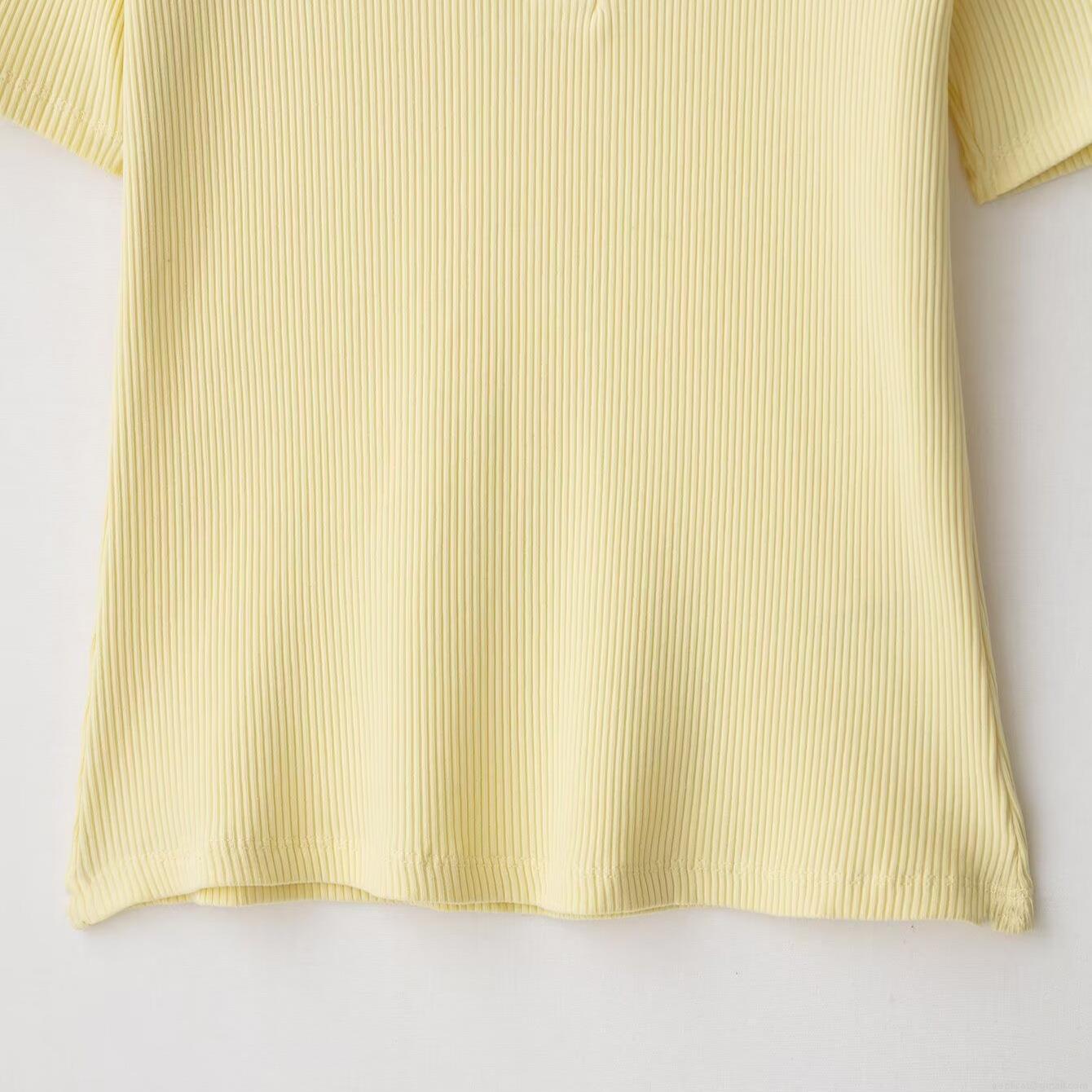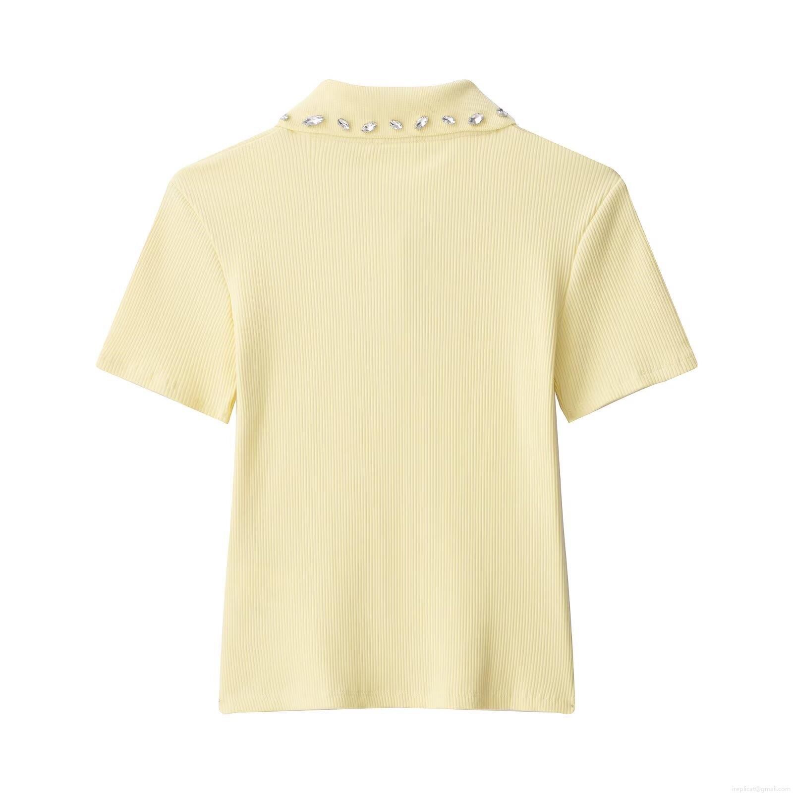 • Women's Short Sleeve Ribbed Knit Polo Shirt With Rhinestone Gemstone Collar Casual Sweet Solid Color Summer Blended Tops For Ladies