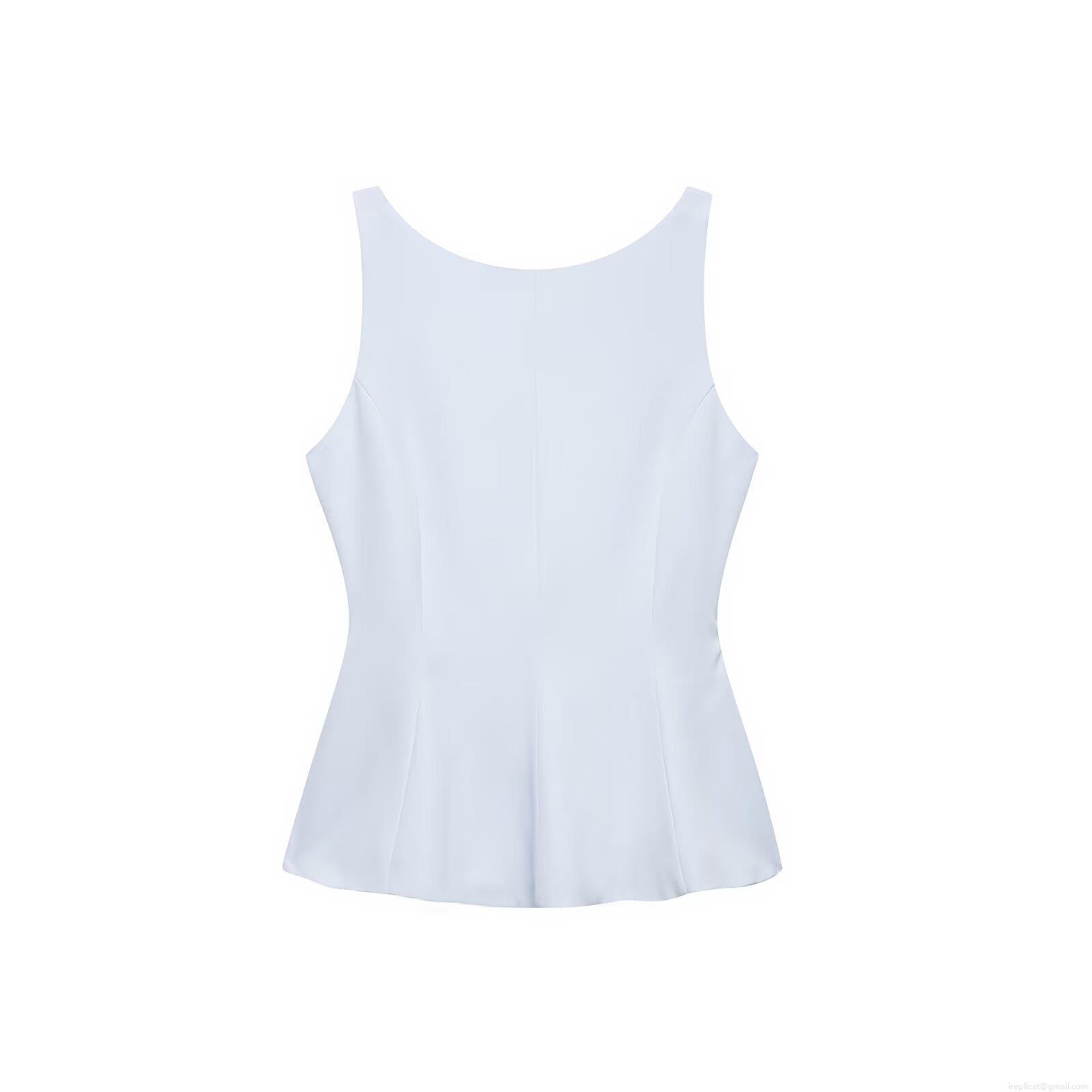 • Women's Sleeveless Backless Peplum T-shirt Top With Bow Tie Back 100% Polyester Solid Color Slim Fit Summer Streetwear Vest Top
