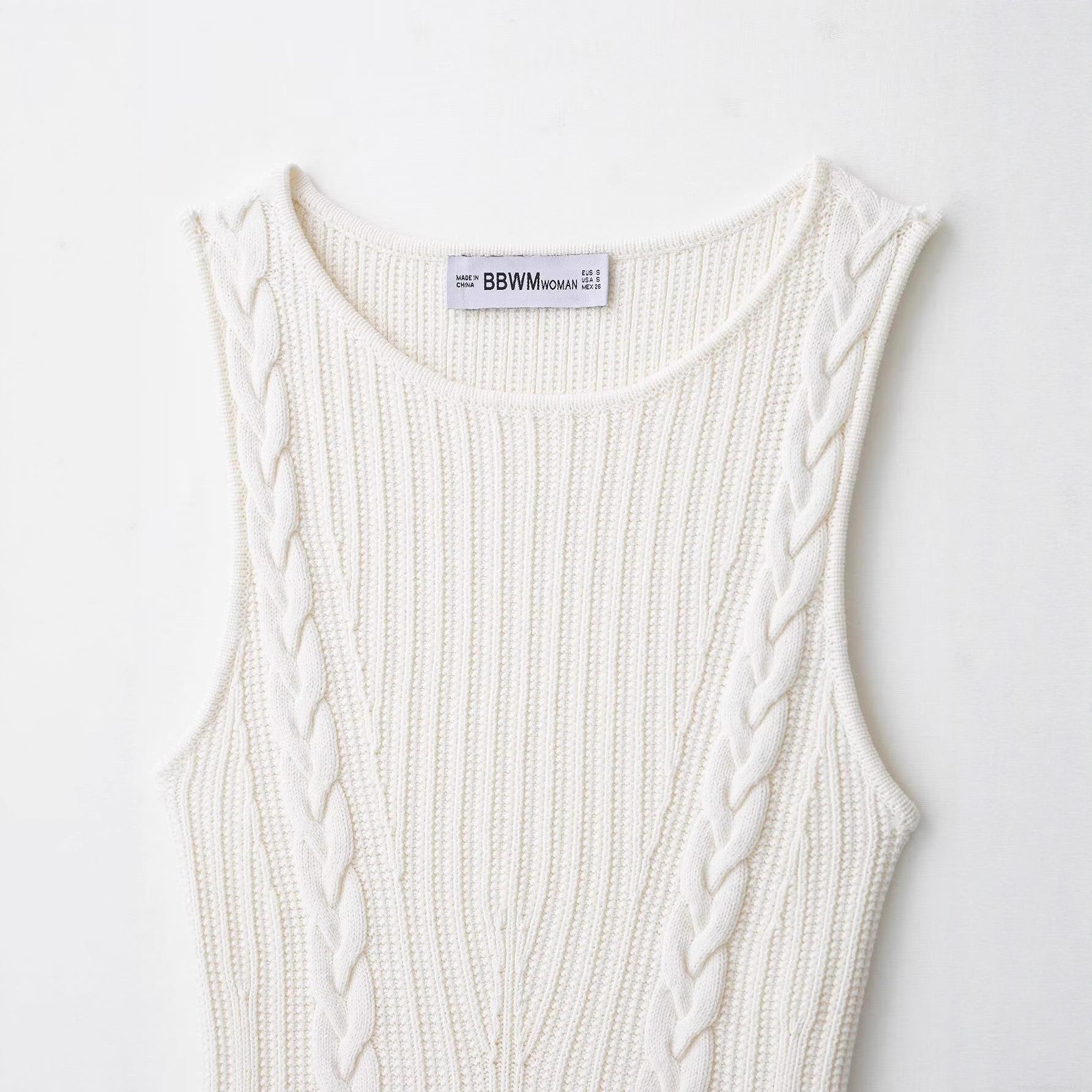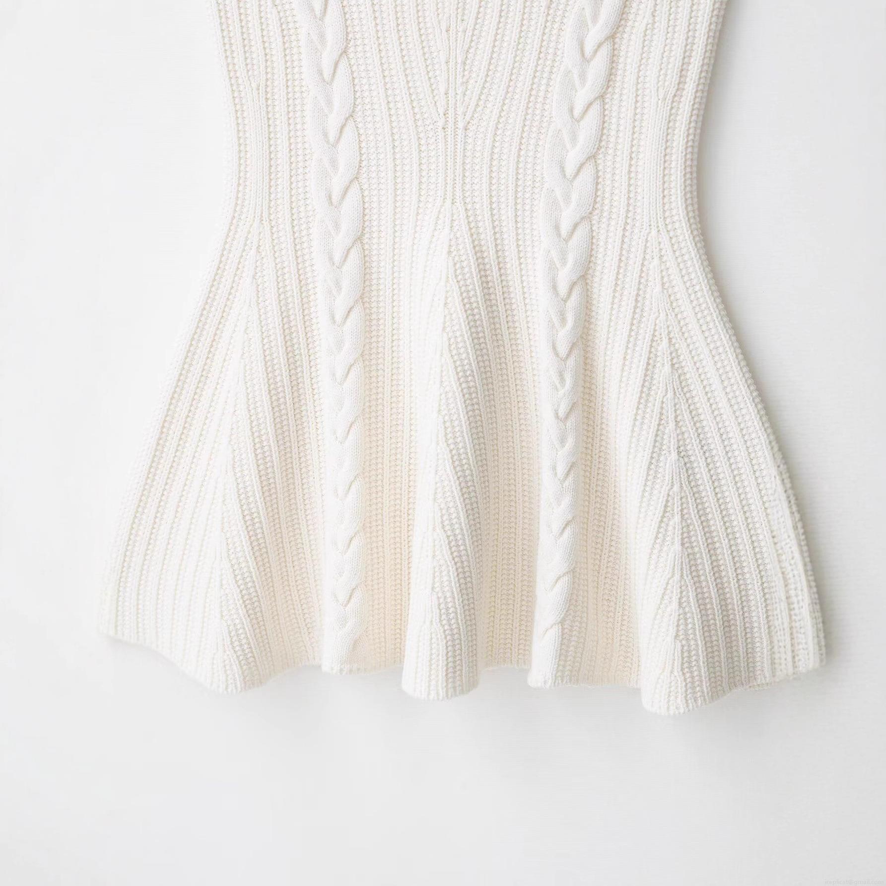 • Women's Sleeveless Cable Knit T-Shirt Round Neck Peplum Hem Polyester Knit Top Streetwear Casual Solid Color Slim Fit Vest For Autumn