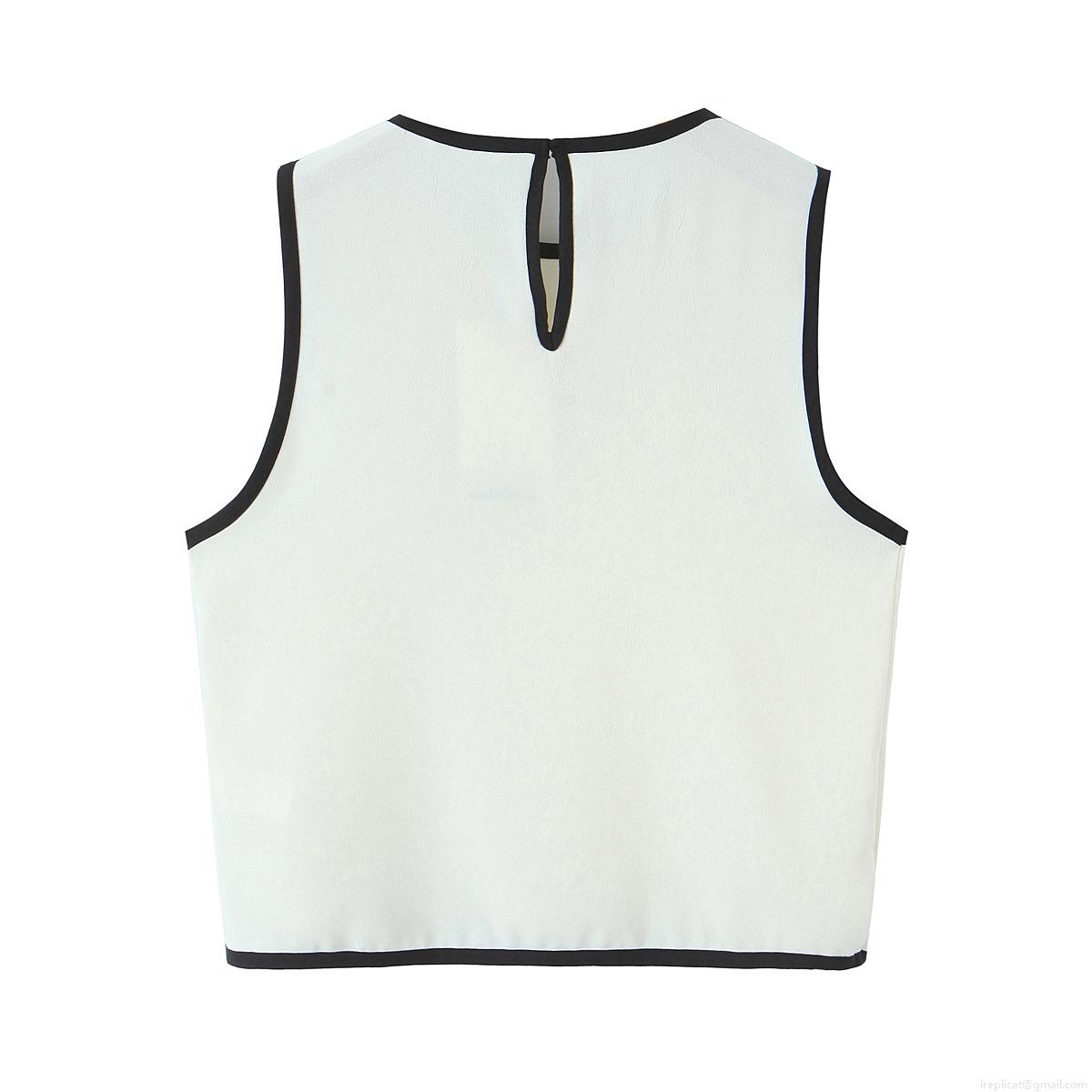 • Women's Sleeveless Crepe Top Contrast Trim Asymmetrical Design Round Neck Casual Chic Tank Top Streetwear For Women